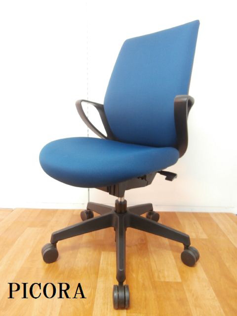 コクヨ製のピコラシリーズのブルーの肘付OAチェアになります。