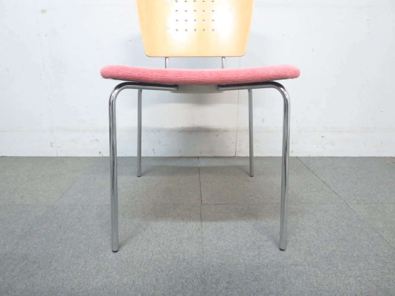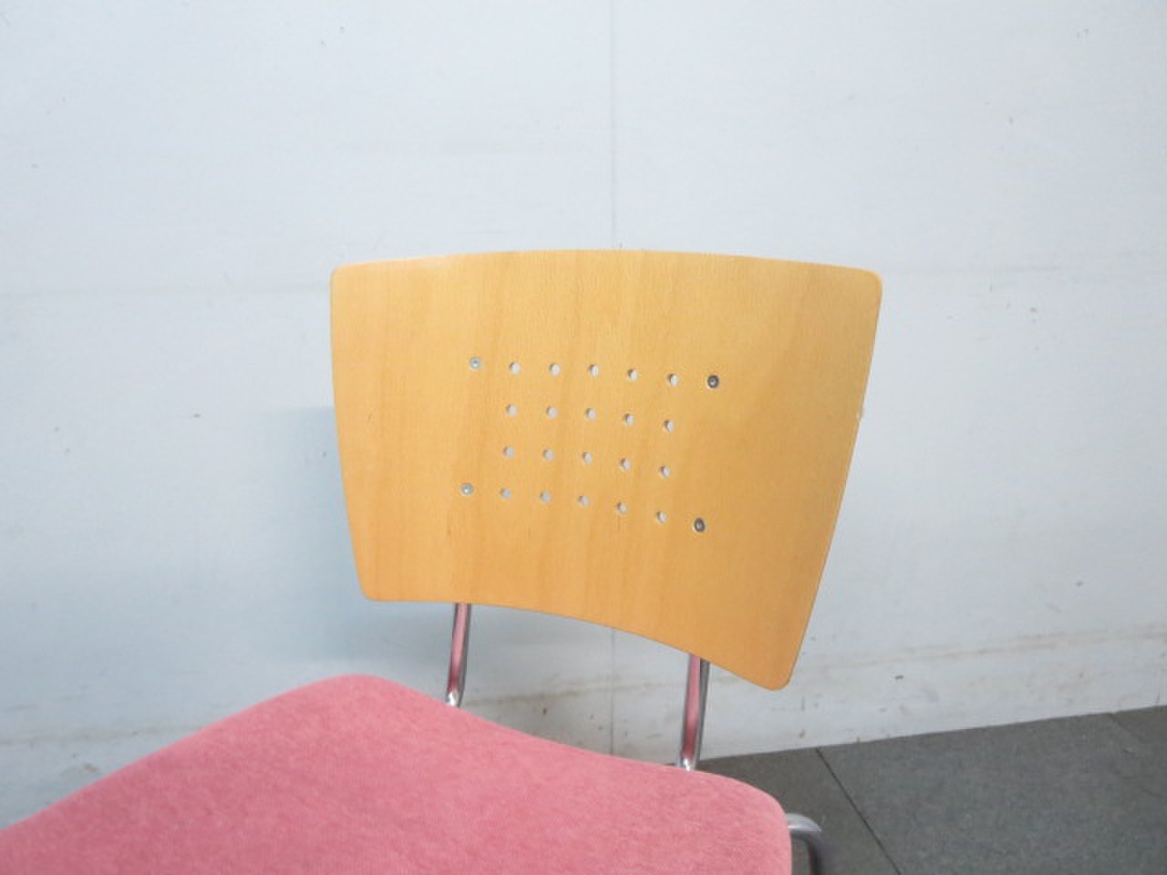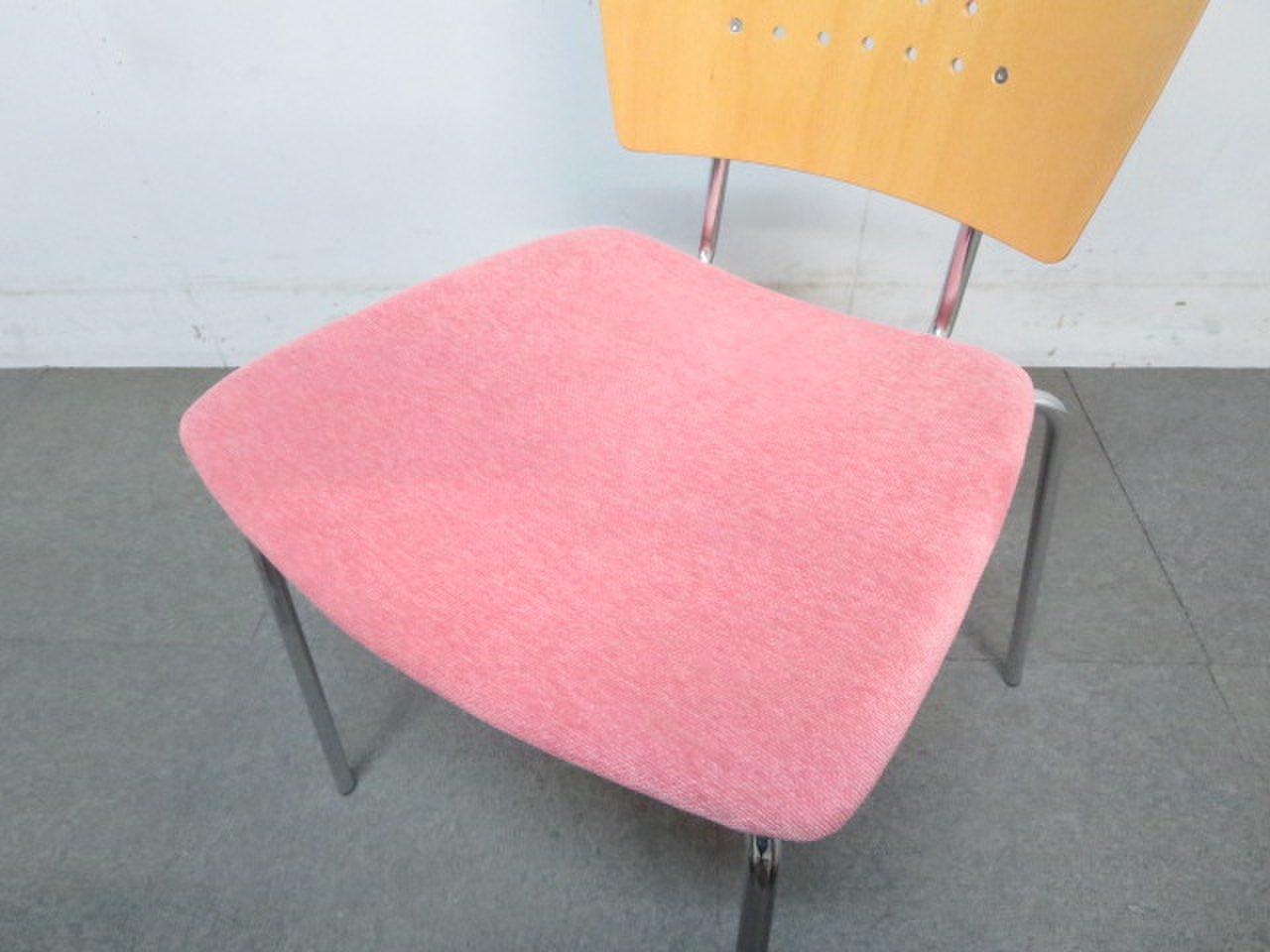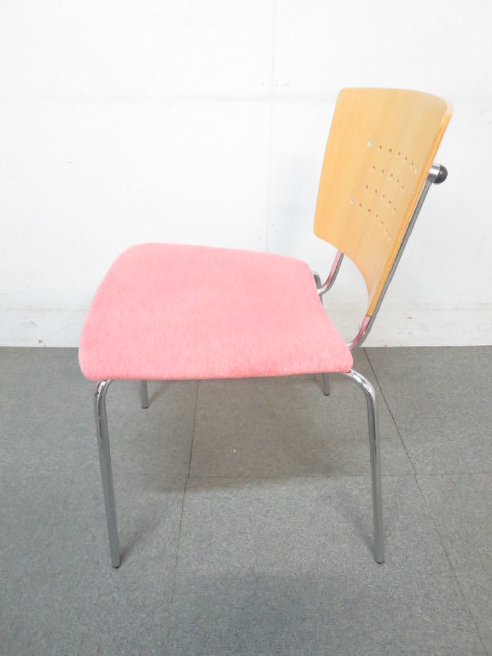 【キュートなピンク!】コクヨ製!スタッキングチェア!【重ねて収納!】【背面は木目調デザイン!】【J】- 川崎店