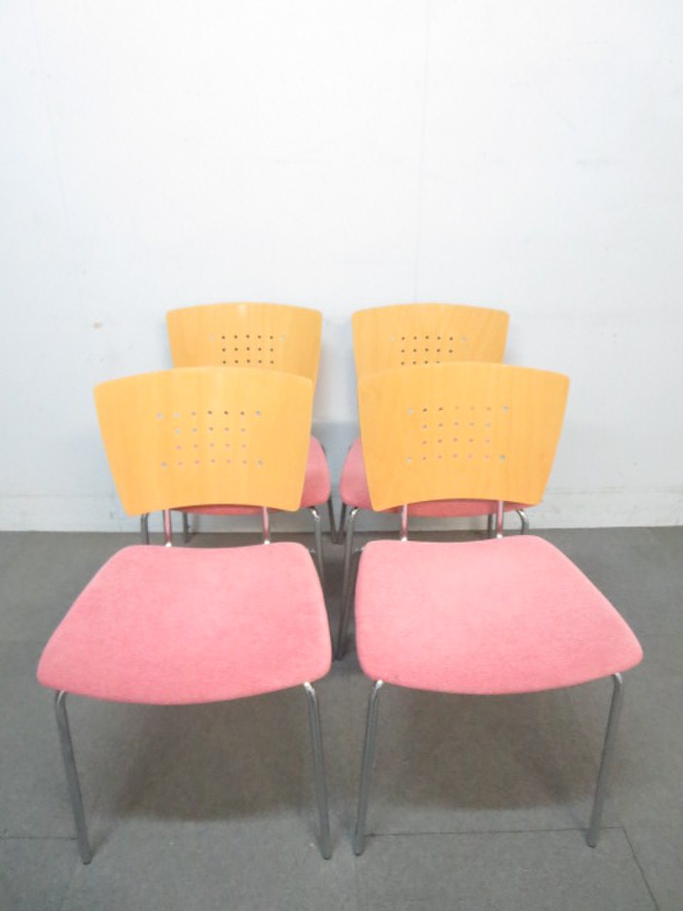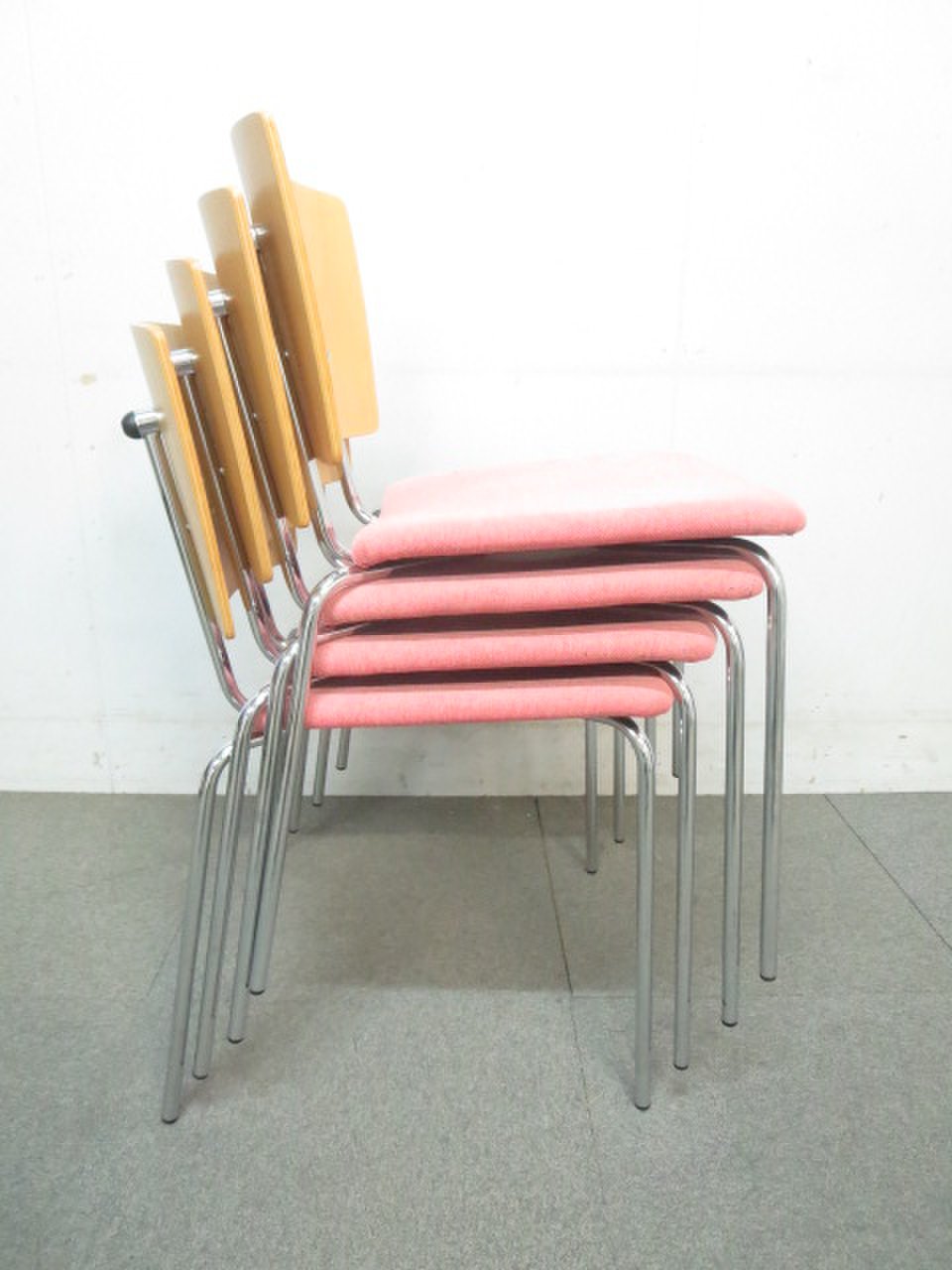 【リフレッシュスペースにオススメ!】■コクヨ製 スタッキングチェア4脚セット ■やさしいイメージのデザイン!【J】- 川崎店
