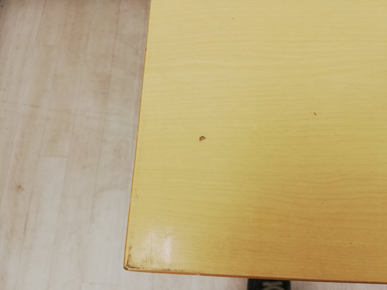 - 壊れている天板歪み、アジャスター無し、キャスター使用不可のようにそのテーブルの本来の効用を果たすための機能に不具合がある。