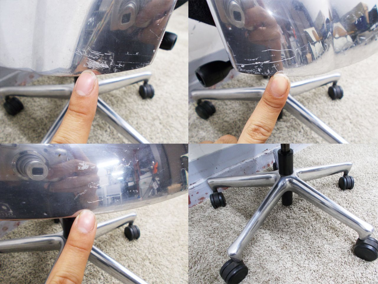 - 目立つ箇所あり傷・破れ・ほつれ・へたり・しわが多数または深い傷・破れ・ほつれ・へたり・しわが一部ある。※座面・背もたれ、シェル、脚部等にある。