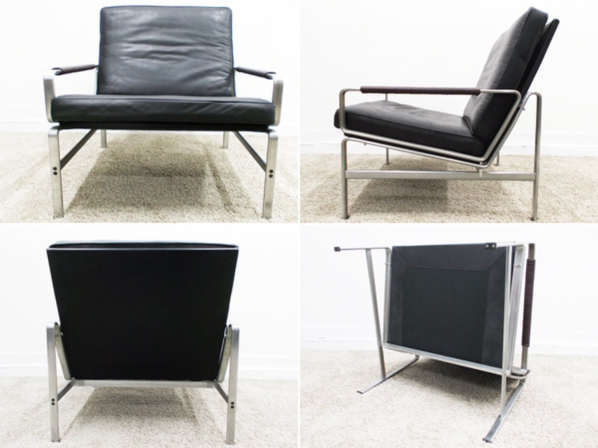 北欧デザイナー ポールケアホルムのように金属を使った表現が見事で曲線で構成されたその独自のフォルムは機能的でありながら 緊張感を持った金属製のシャープな脚と肉厚のシートクッションのコントラストが美術的な美しさを生み出しています。どの角度から見ても美しい洗練された仕上がり。背と座のサイジングも緻密に計算されていてゆったりとした座り心地を実現しています。