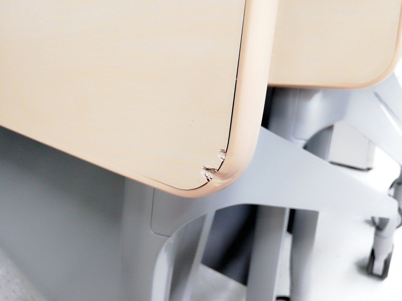 - 壊れている天板歪み、アジャスター無し、キャスター使用不可のようにそのテーブルの本来の効用を果たすための機能に不具合がある。