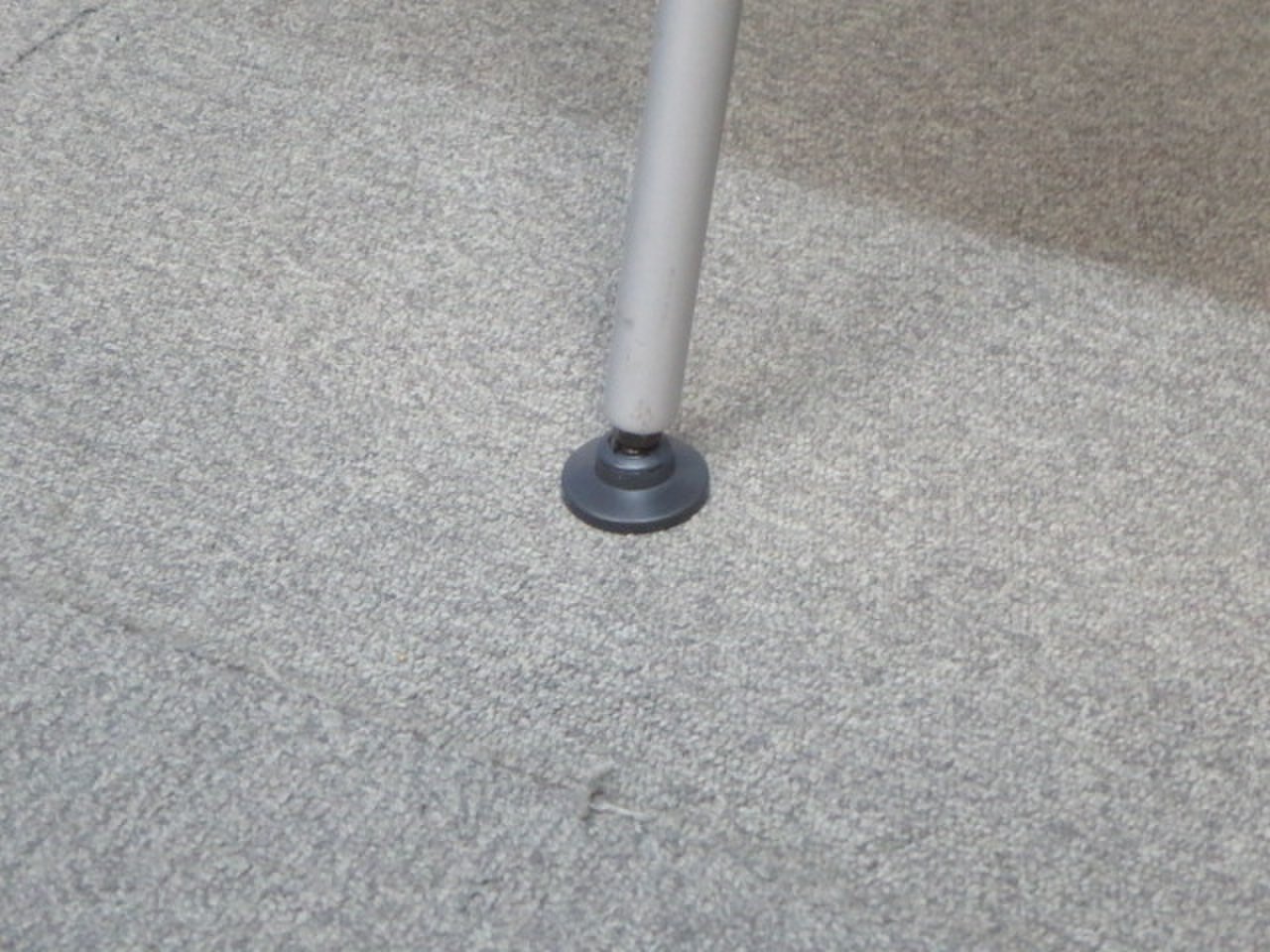 - 一部不具合あり天板歪み、アジャスター無し、キャスター使用不可ようなそのテーブルの本来の効用を果たすための機能以外の一部が使用不可な状態。(例、キャスターロッ ク機能使用不可、棚板無し等がある。)