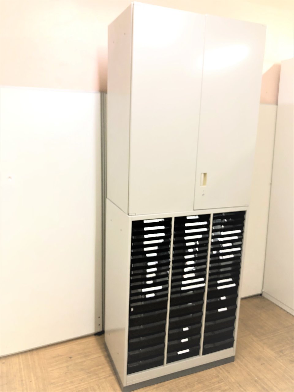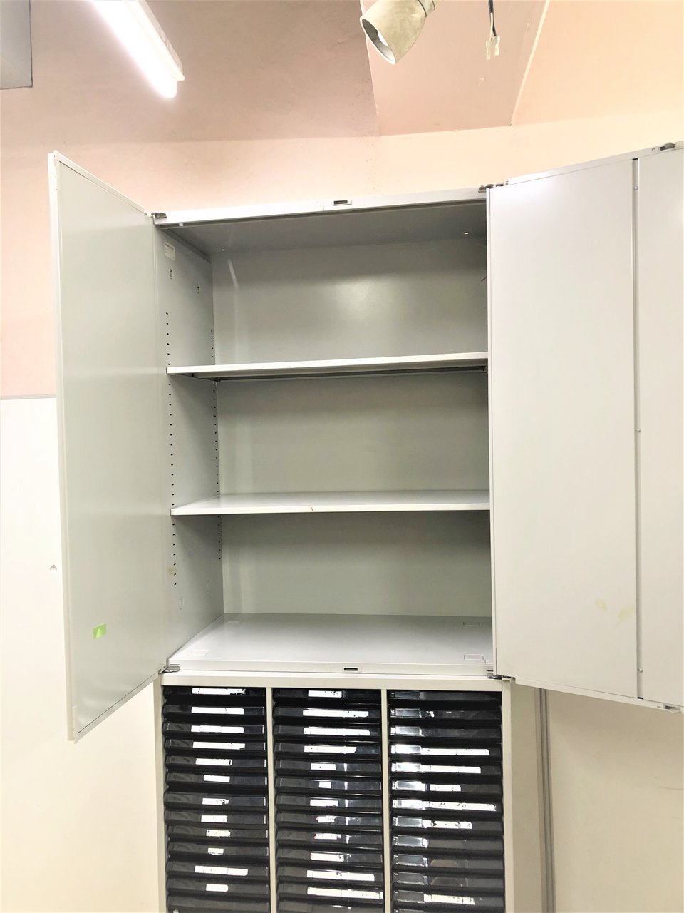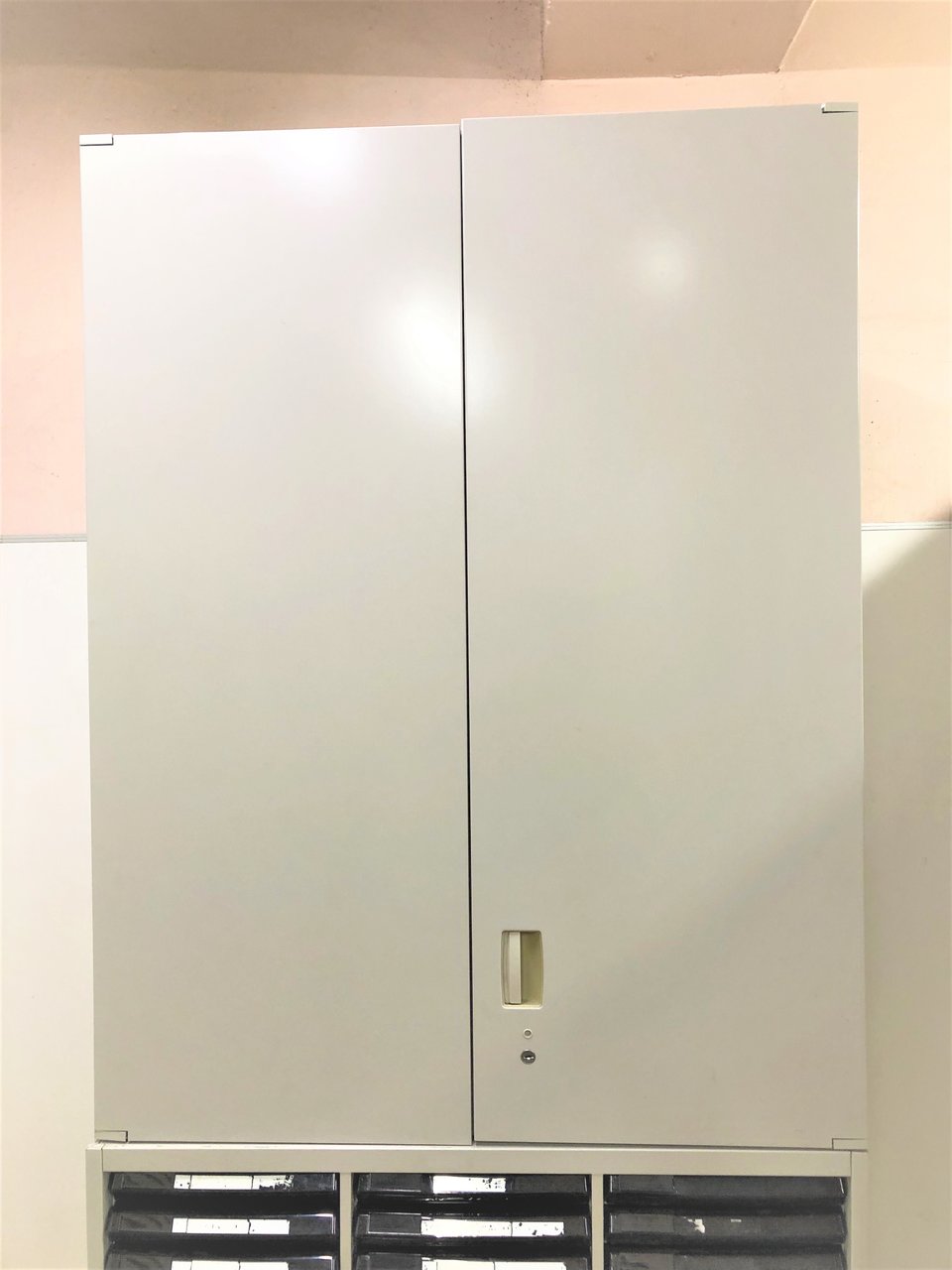 【スリムな幅800㎜で省スペース化】上下書庫セット【両開き+トレー】- 名古屋本店