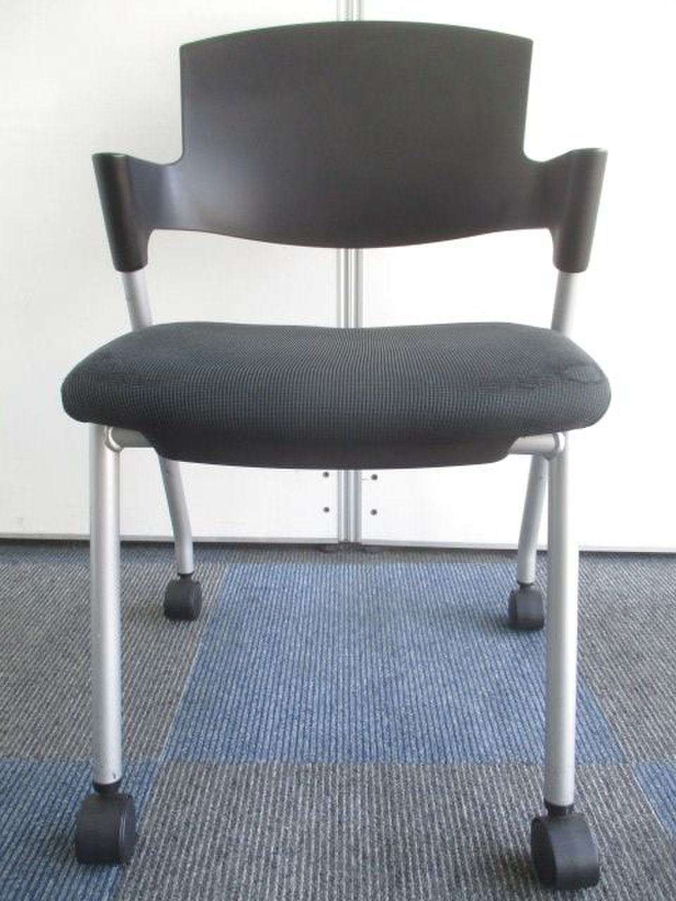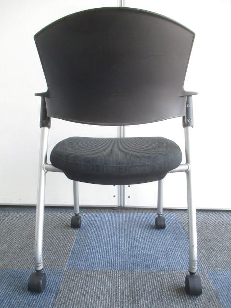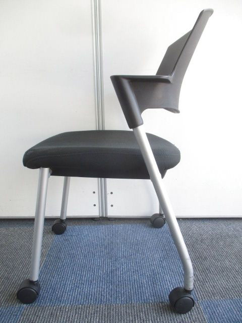 【シンプルスマートなスタッキングチェア!分厚いクッションで長時間でも快適な座り心地!】■スタッキングチェア 肘付ミーティングチェア ■固定肘 ■キャスター付 ■ブラック ■背面樹脂/コクヨ(KOKUYO/プロッティ