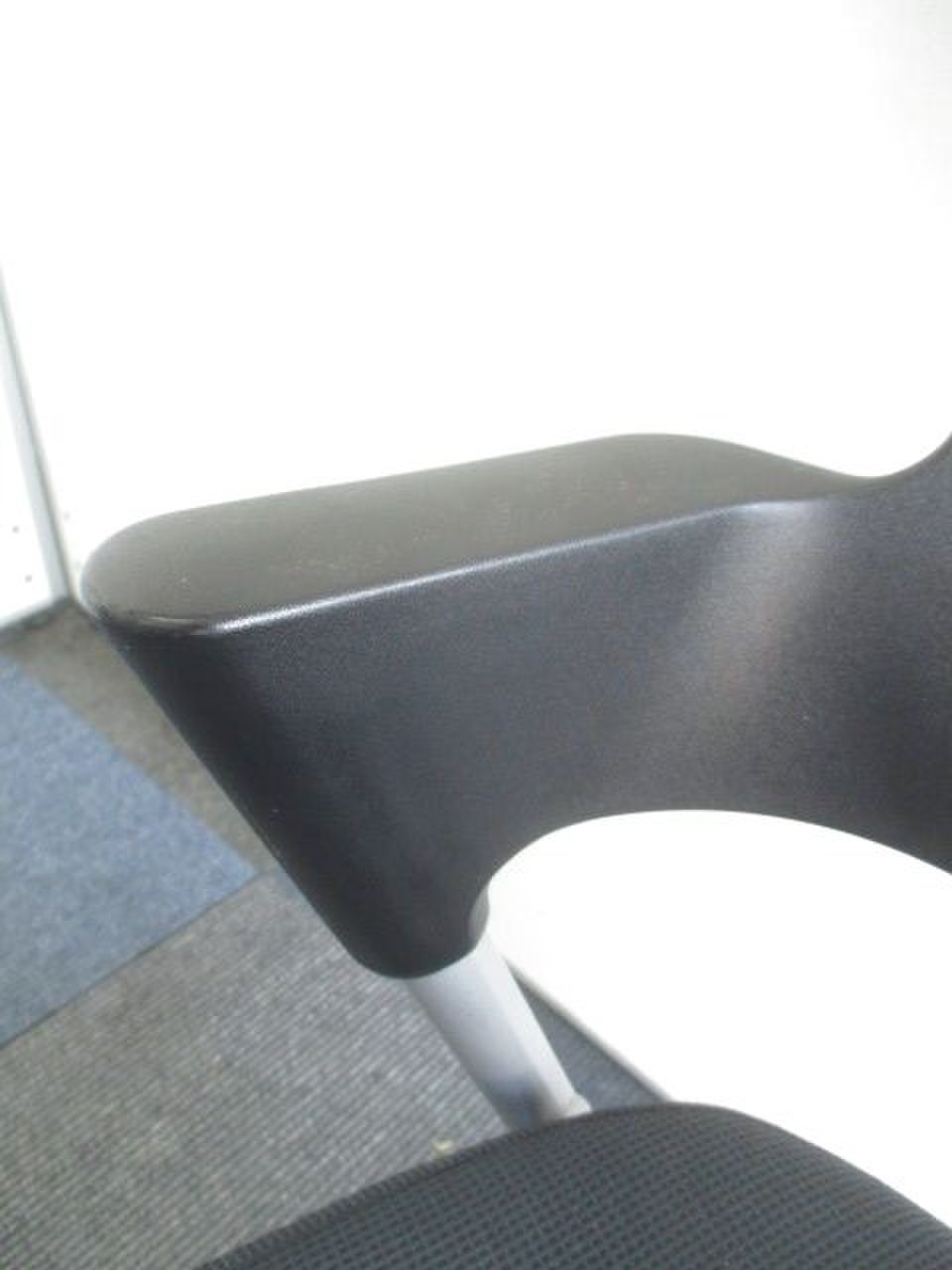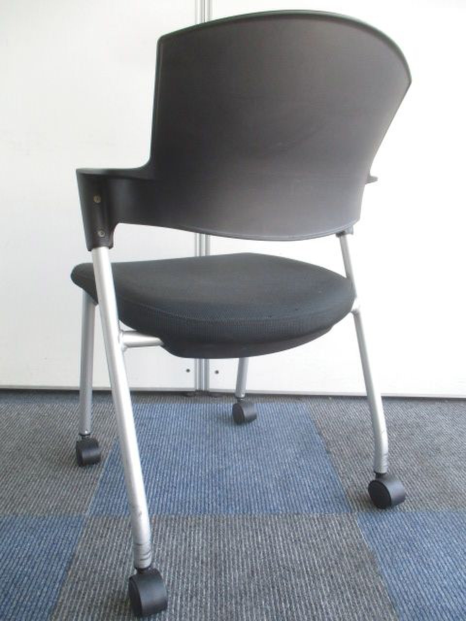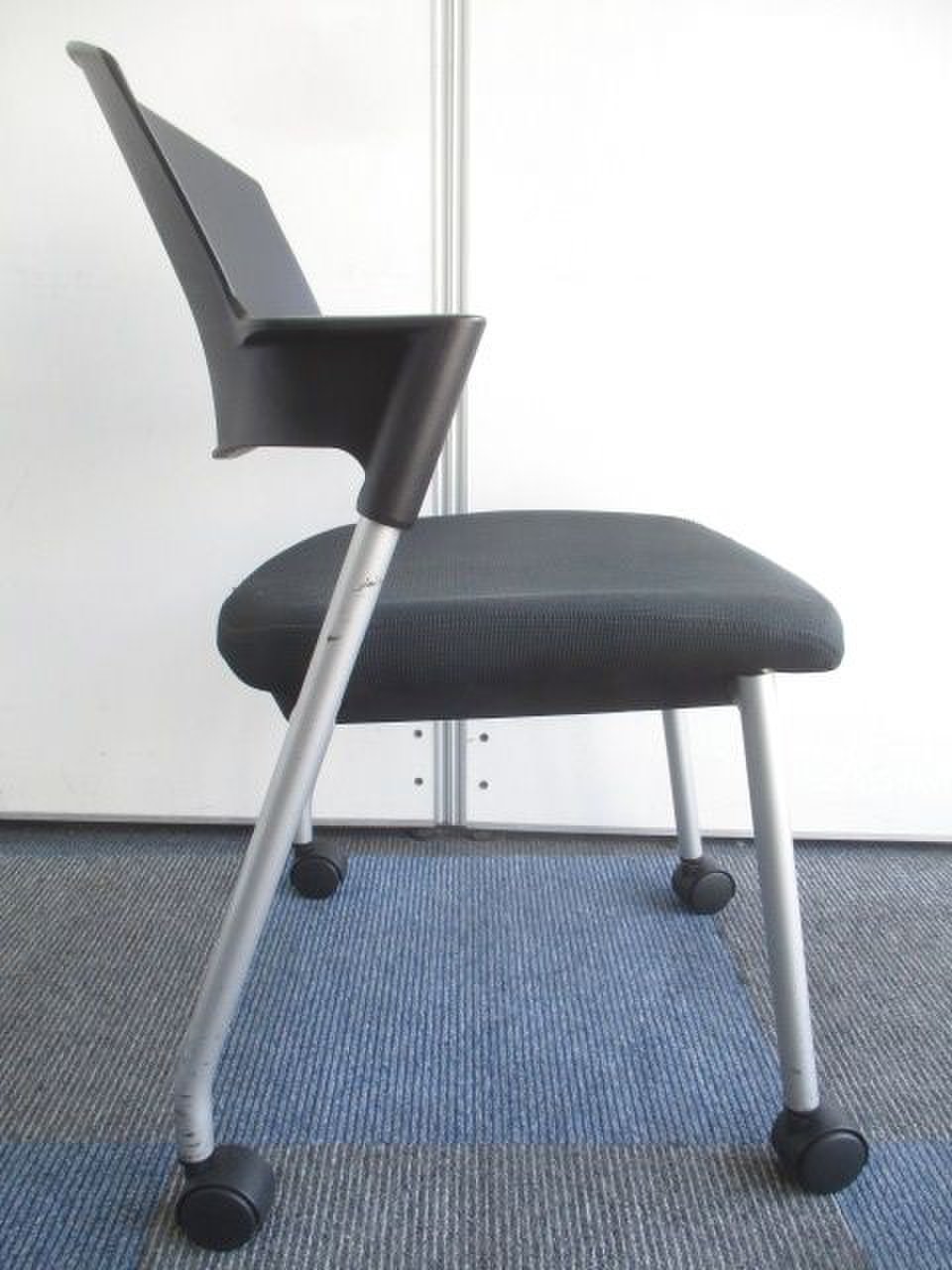 【シンプルスマートなスタッキングチェア!分厚いクッションで長時間でも快適な座り心地!】■スタッキングチェア 肘付ミーティングチェア ■固定肘 ■キャスター付 ■ブラック ■背面樹脂/コクヨ(KOKUYO/プロッティ