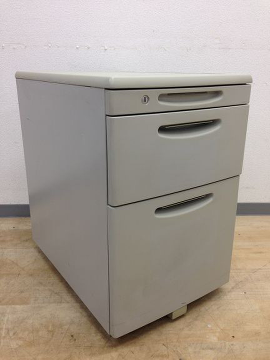 【天板の把手とキャスターで移動がらくらく!シンプルでスタンダードな3段ワゴン!】■オカムラ(okamura)製 SDシリーズ 3段ワゴン デスクインワゴン H610mm ■ライトグレー ■シリンダー錠オフィスバスターズ 水戸サテライト 日立市、常陸太田市、高萩市、北茨城市、常陸大宮市、大子町 ひたちなか市