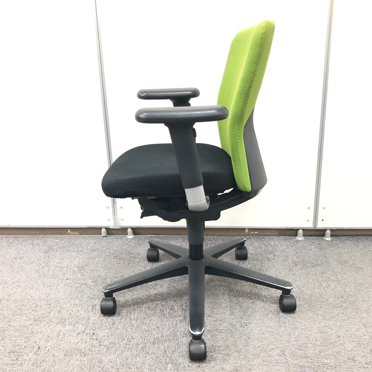 鮮やかなグリーンが特徴的なローバック 肘付きチェア