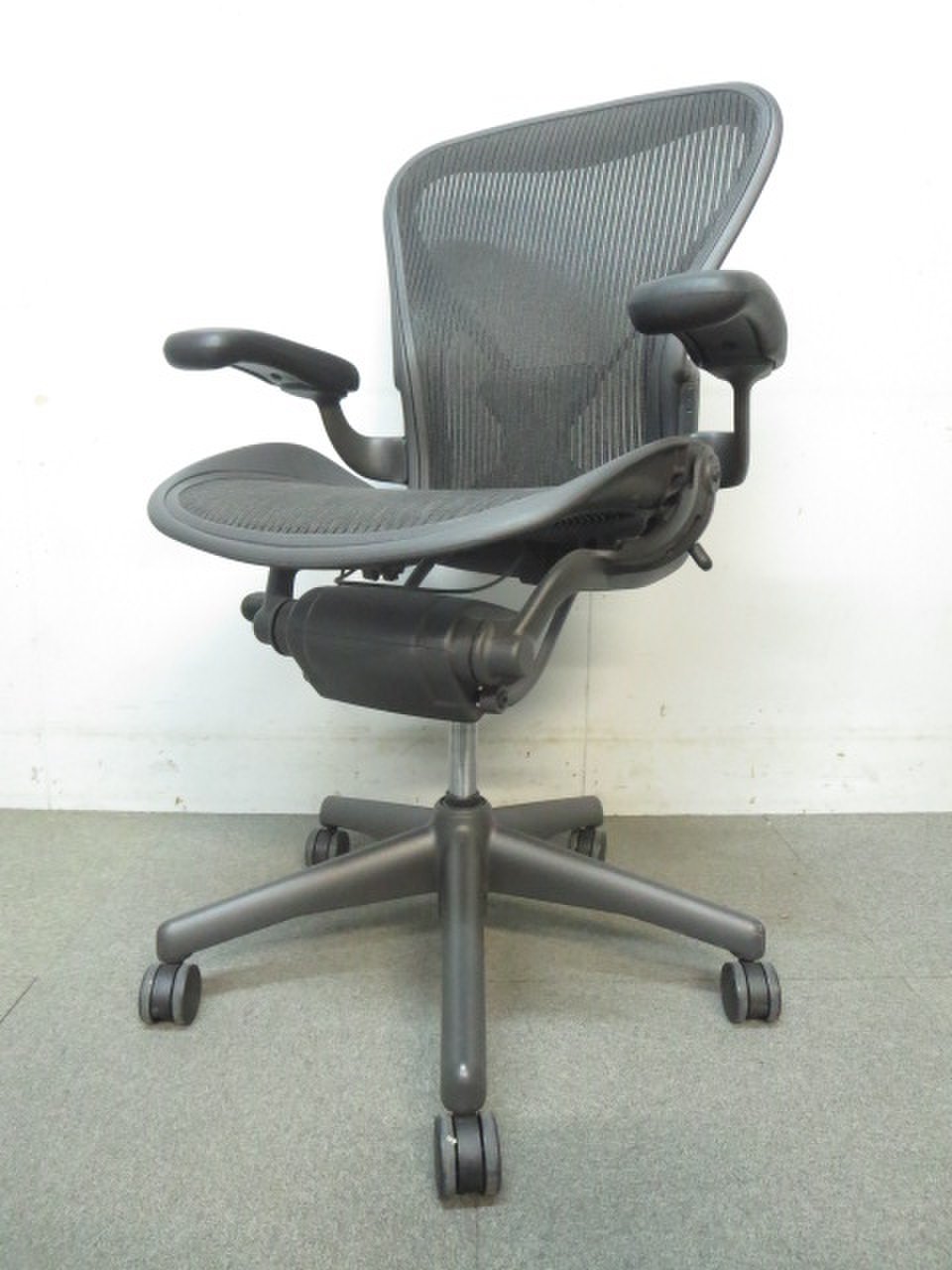 【★状態イマイチのためお安く!】■ハーマンミラー製 アーロンチェア Bサイズ 固定肘 ※キズあり・ランバーサポート無・昇降ガス圧弱めのためお安く!【訳あり特価品】