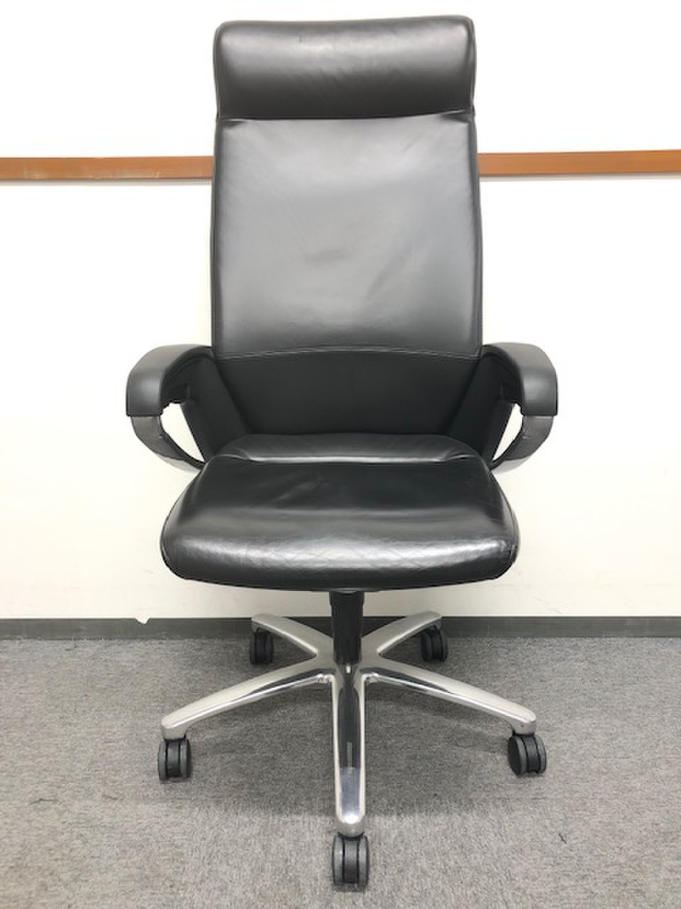 【※使用感有】革張り仕様の高性能チェア!社長用・役員席用としてもおすすめの本革製高級チェア! ■コクヨ/フィロソフィー(Philosophy)/ブラック レザー【弊社使用欄:A01034986】【KN】