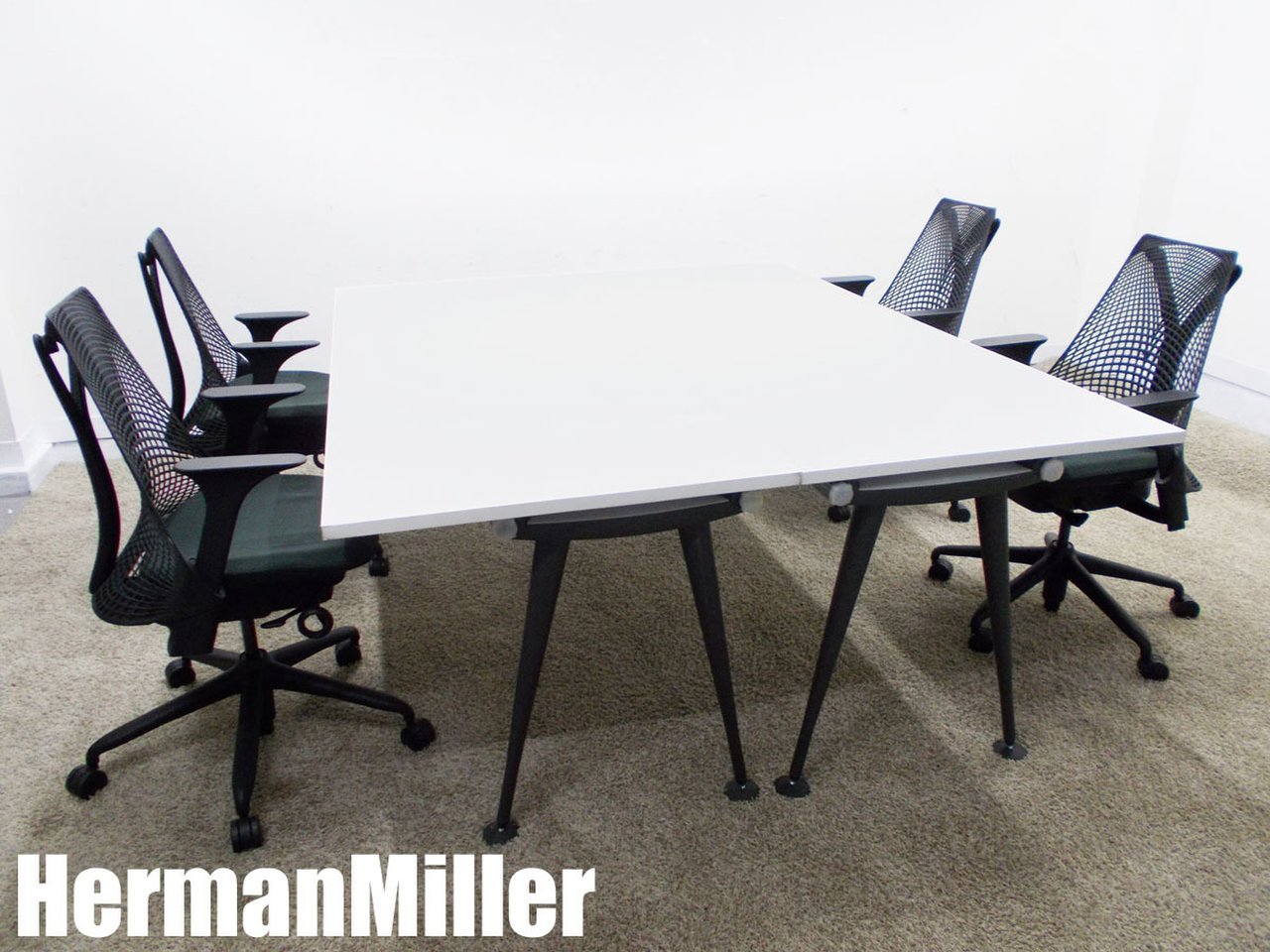 HermanMiller/ハーマンミラー アバック テーブル 2台 & セイルチェア 肘付4脚セット- デザイナーズ家具センター