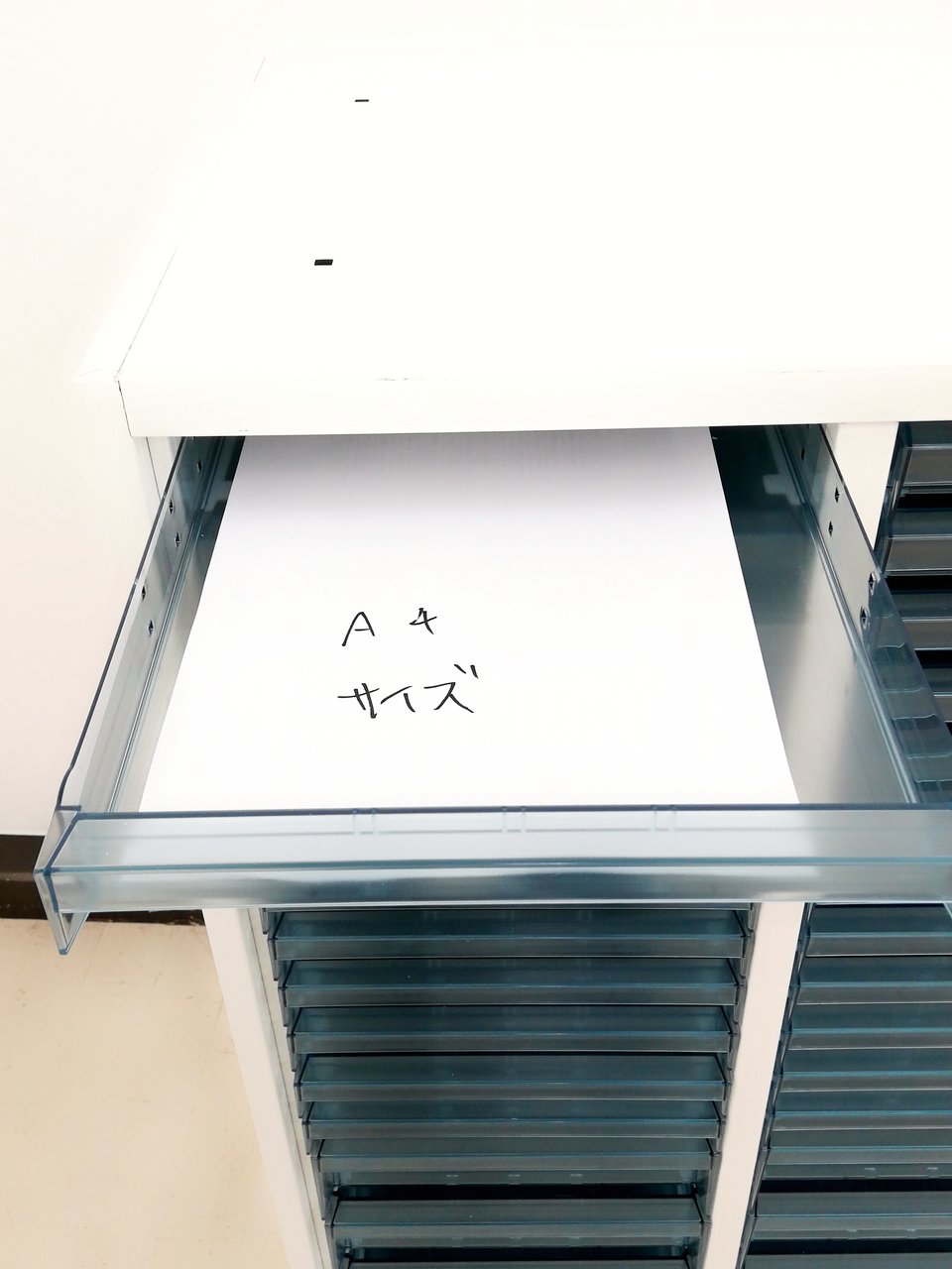 A4サイズが収納可能です!・・・が、少しトレーの大きさに余裕がありますから、ちょっとくらいサイズが大きな書類も収納可能でございますよー!