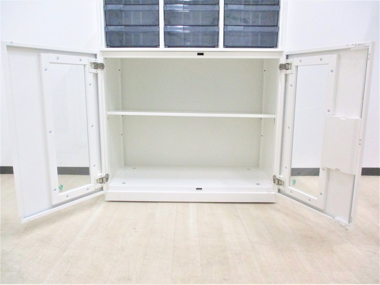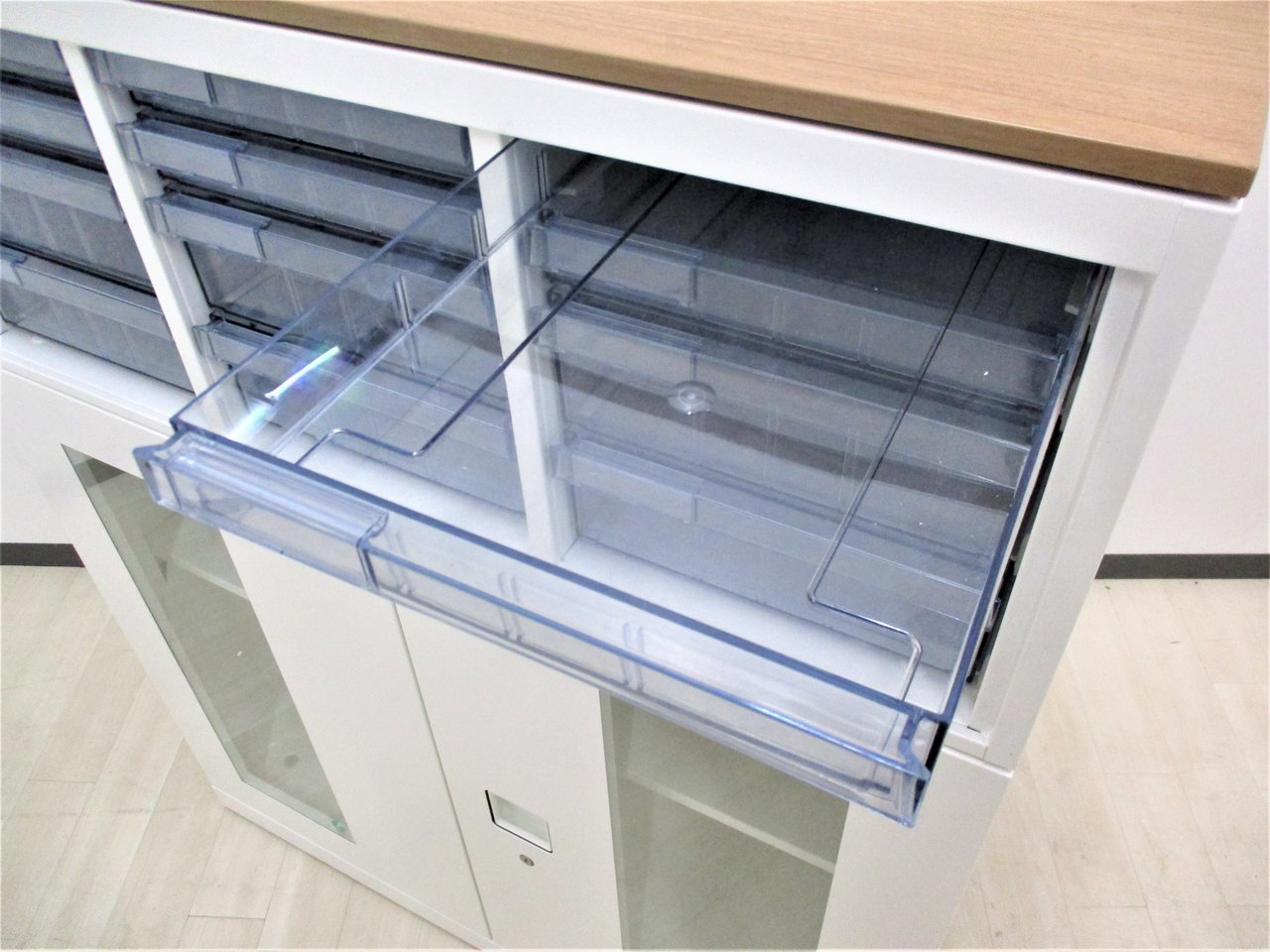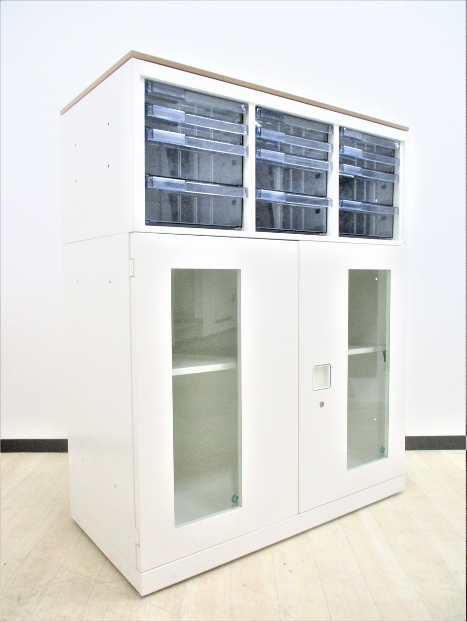 ★オカムラ製 レクトライ ホワイト 3列x16段 浅型x11段/深型x5段混在 W900xD450xH1150サイズ 天板付 クリスタルトレーキャビネット クリスタルトレイ!!