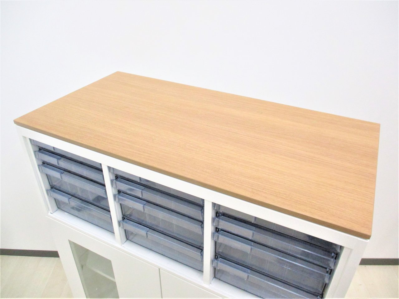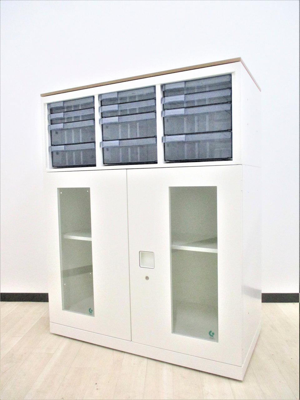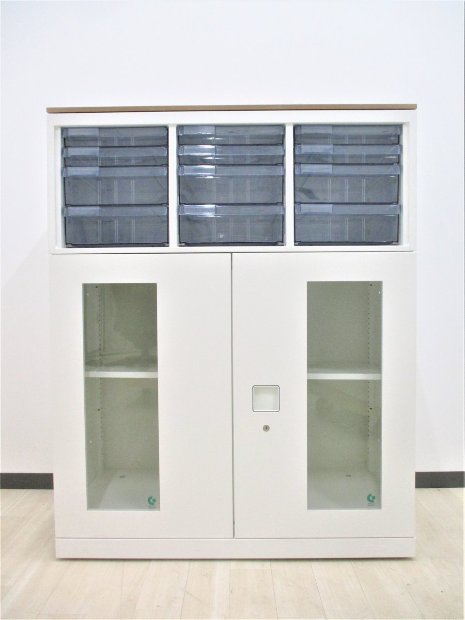 ★オカムラ製 レクトライ ホワイト 3列x16段 浅型x11段/深型x5段混在 W900xD450xH1150サイズ 天板付 クリスタルトレーキャビネット クリスタルトレイ!!