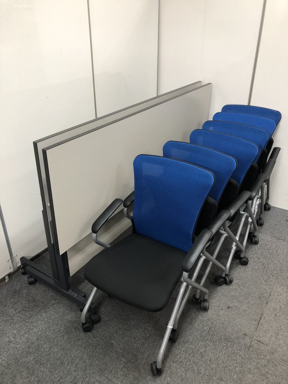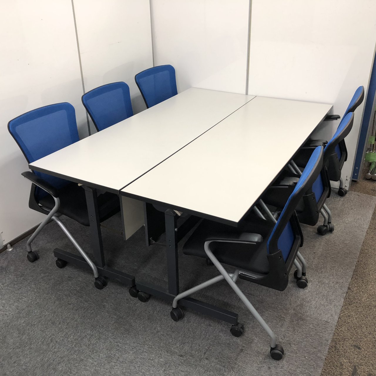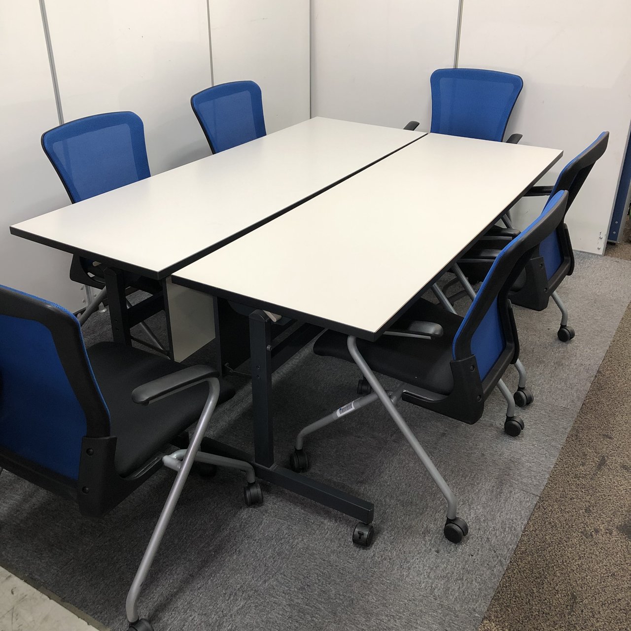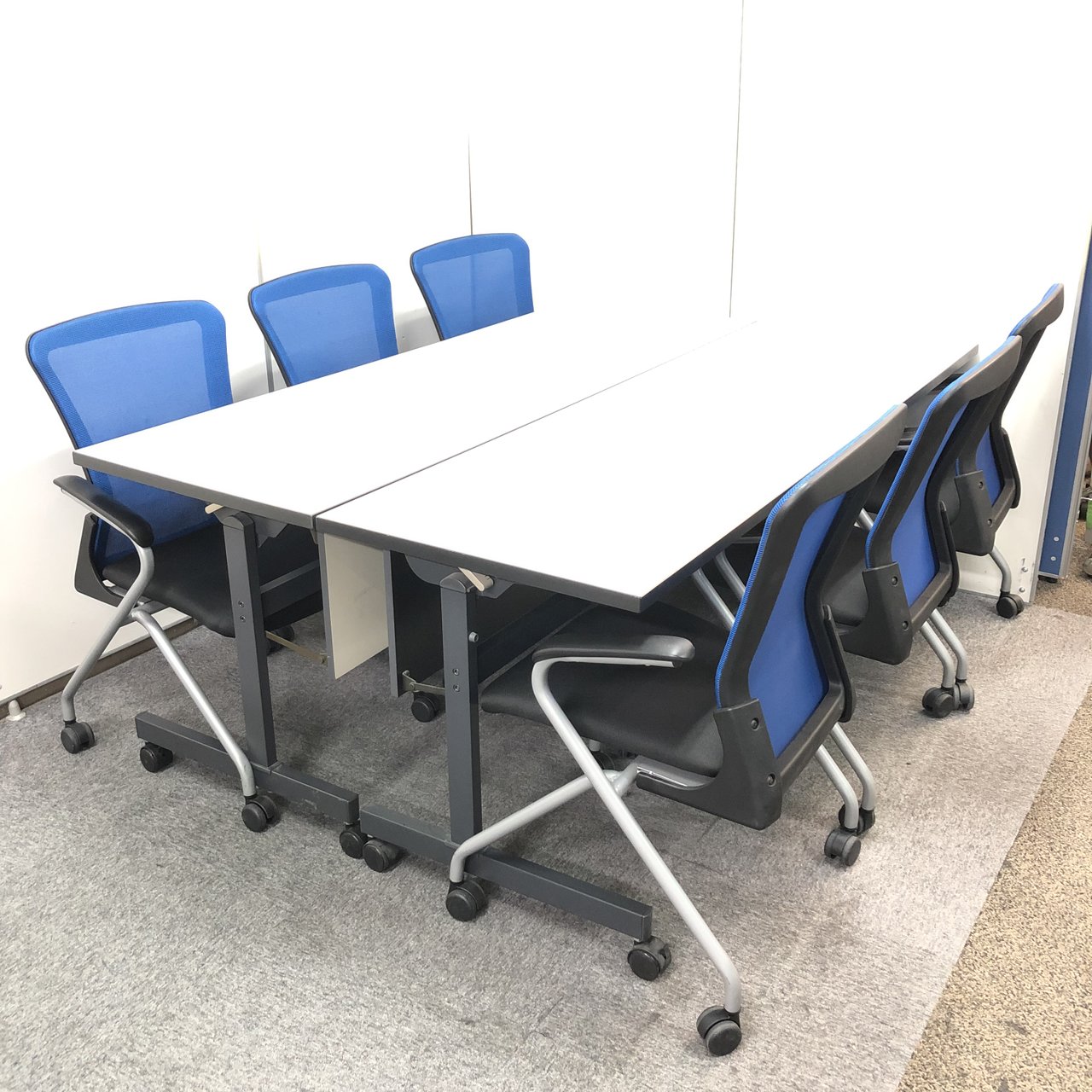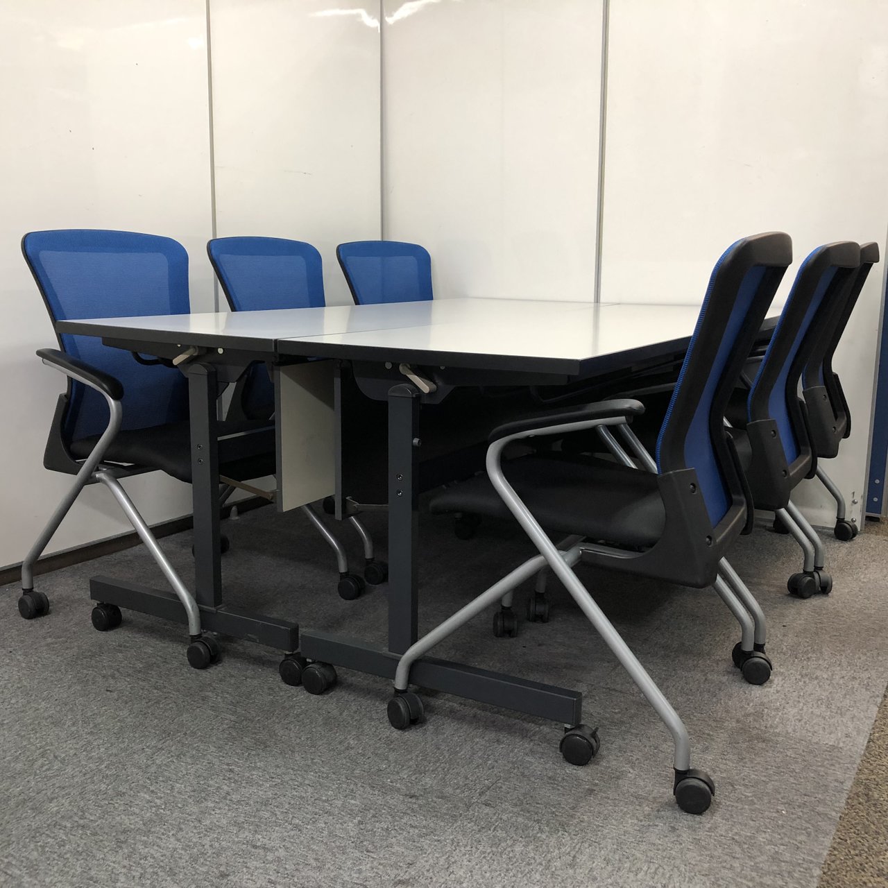 【このセットがあれば会議などはなんとかなる!!】W1800のサイドスタックテーブル!幕板付で女性も安心!チェアはメッシュで通気性抜群!!- 京都東寺店