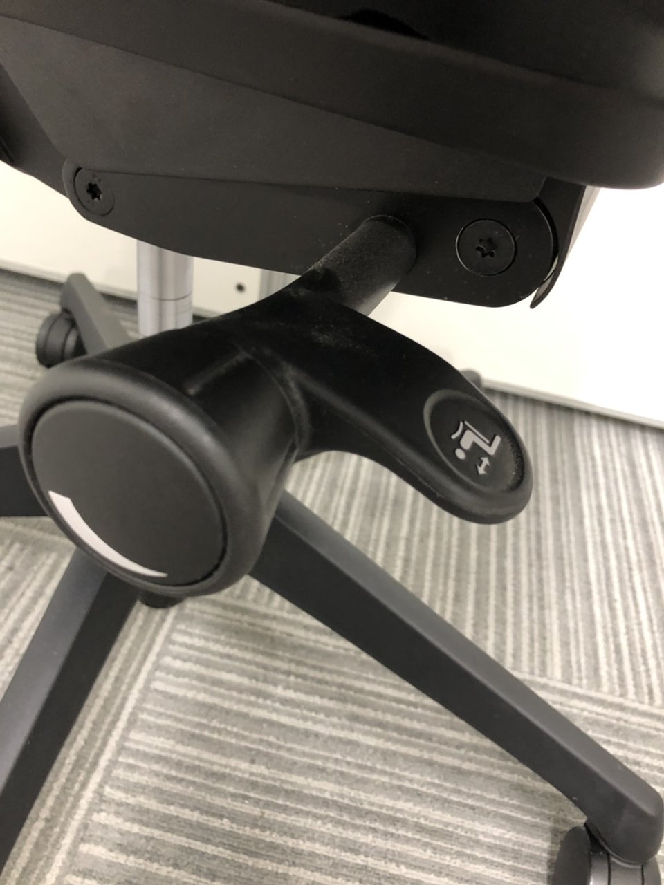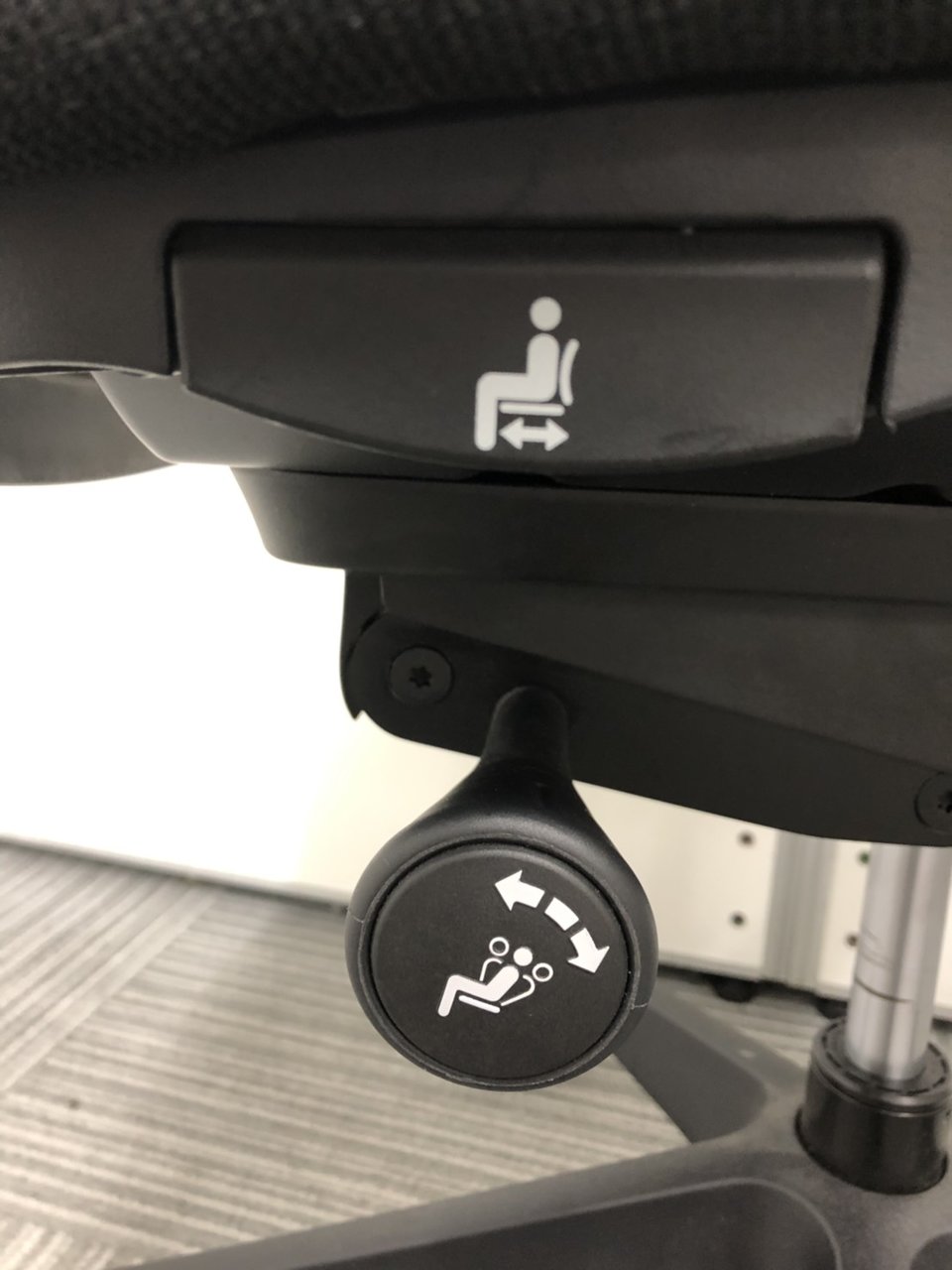 - 座面右下のダイヤル操作で、リクライニングの強弱調整が行えます。これまでのダイヤル式よりも、少ない回転数で、最弱?最強の調整が可能です。