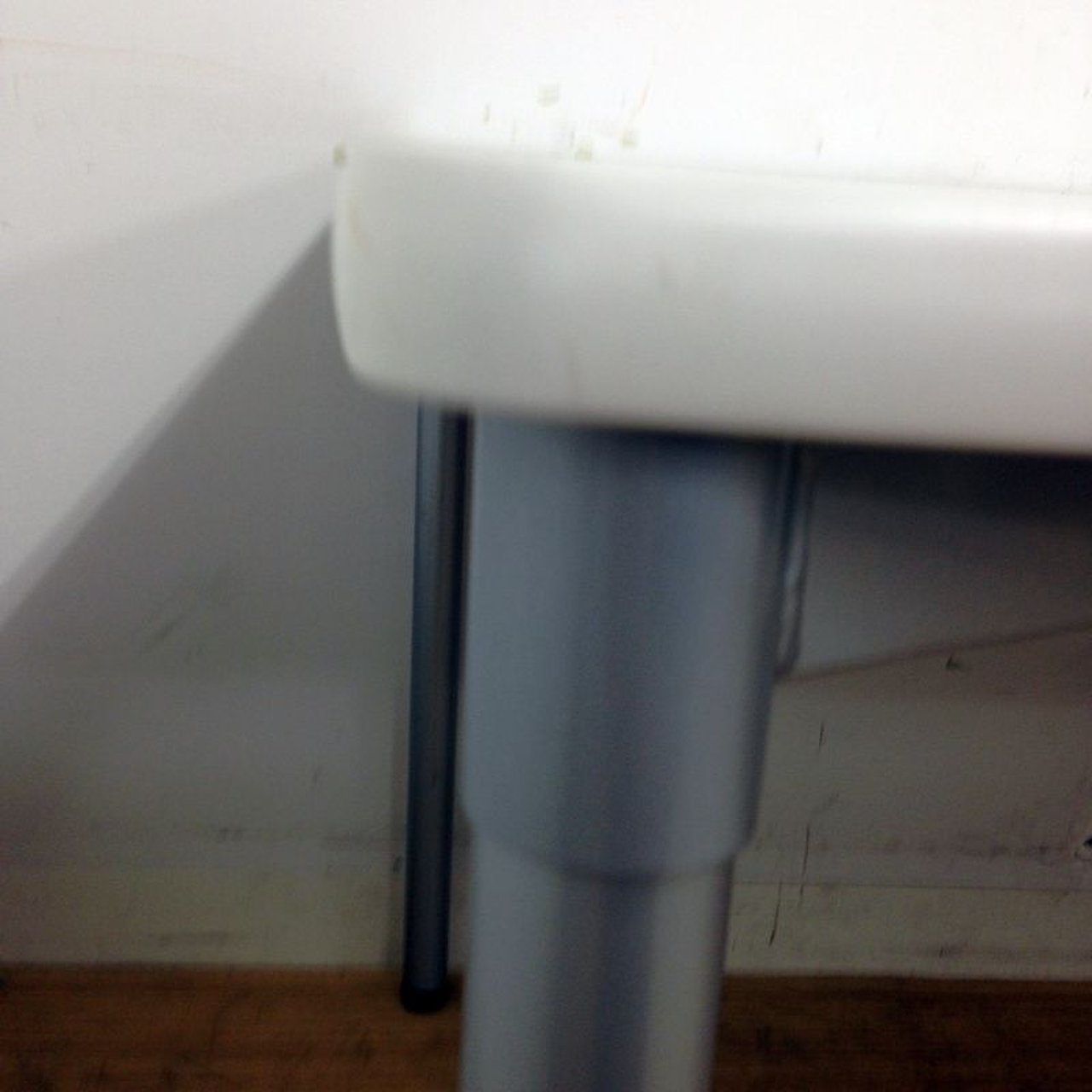 - 一部不具合あり天板歪み、アジャスター無し、キャスター使用不可ようなそのテーブルの本来の効用を果たすための機能以外の一部が使用不可な状態。(例、キャスターロッ ク機能使用不可、棚板無し等がある。)
