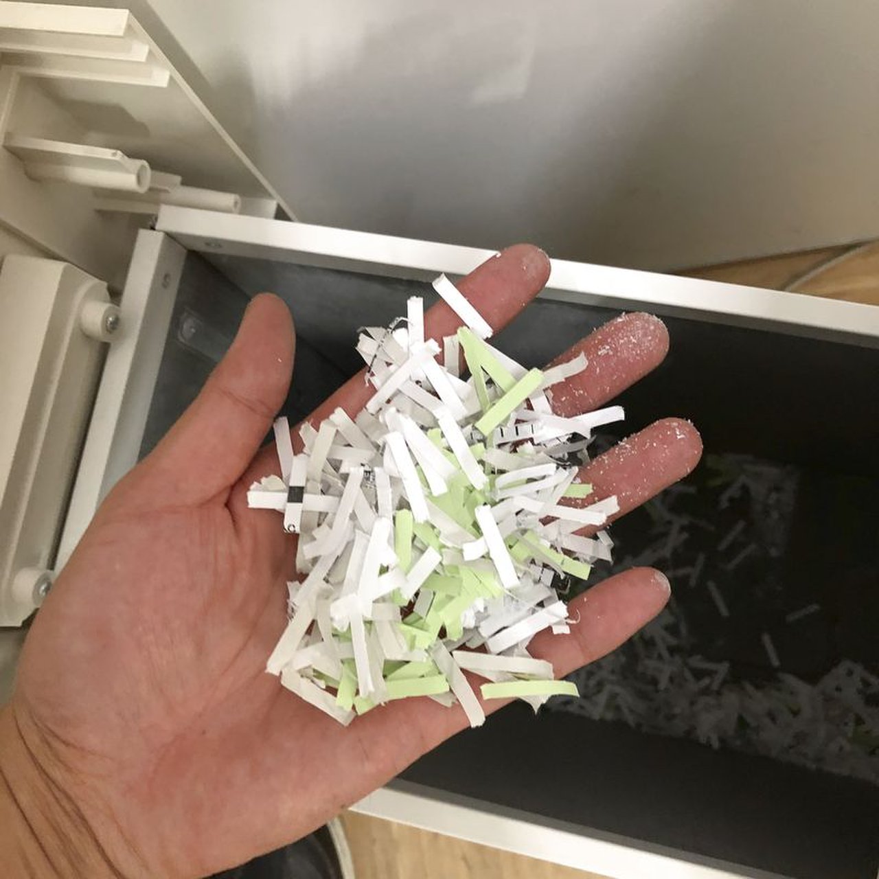 細断くずはミリ単位でチップ状に細断され、収容能力を高めます。