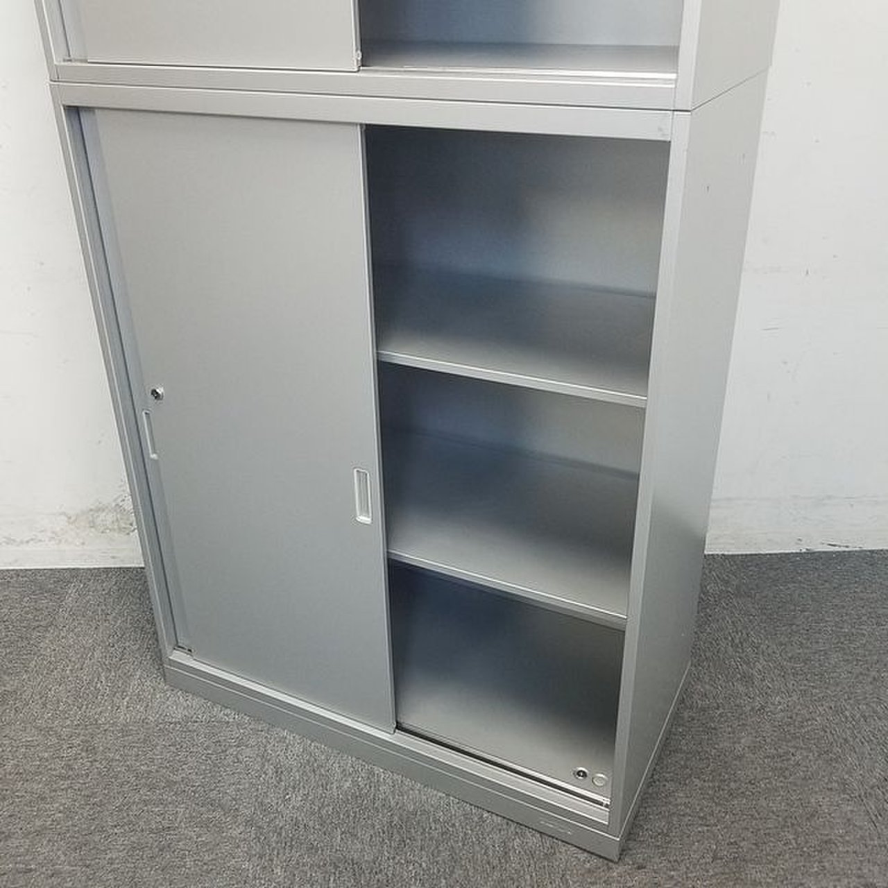 【5台入荷】オカムラ製|42シリーズ|上下引違い戸の書庫セット!スタイリッシュなシルバーカラー!【中古家具】- 大阪・堺店