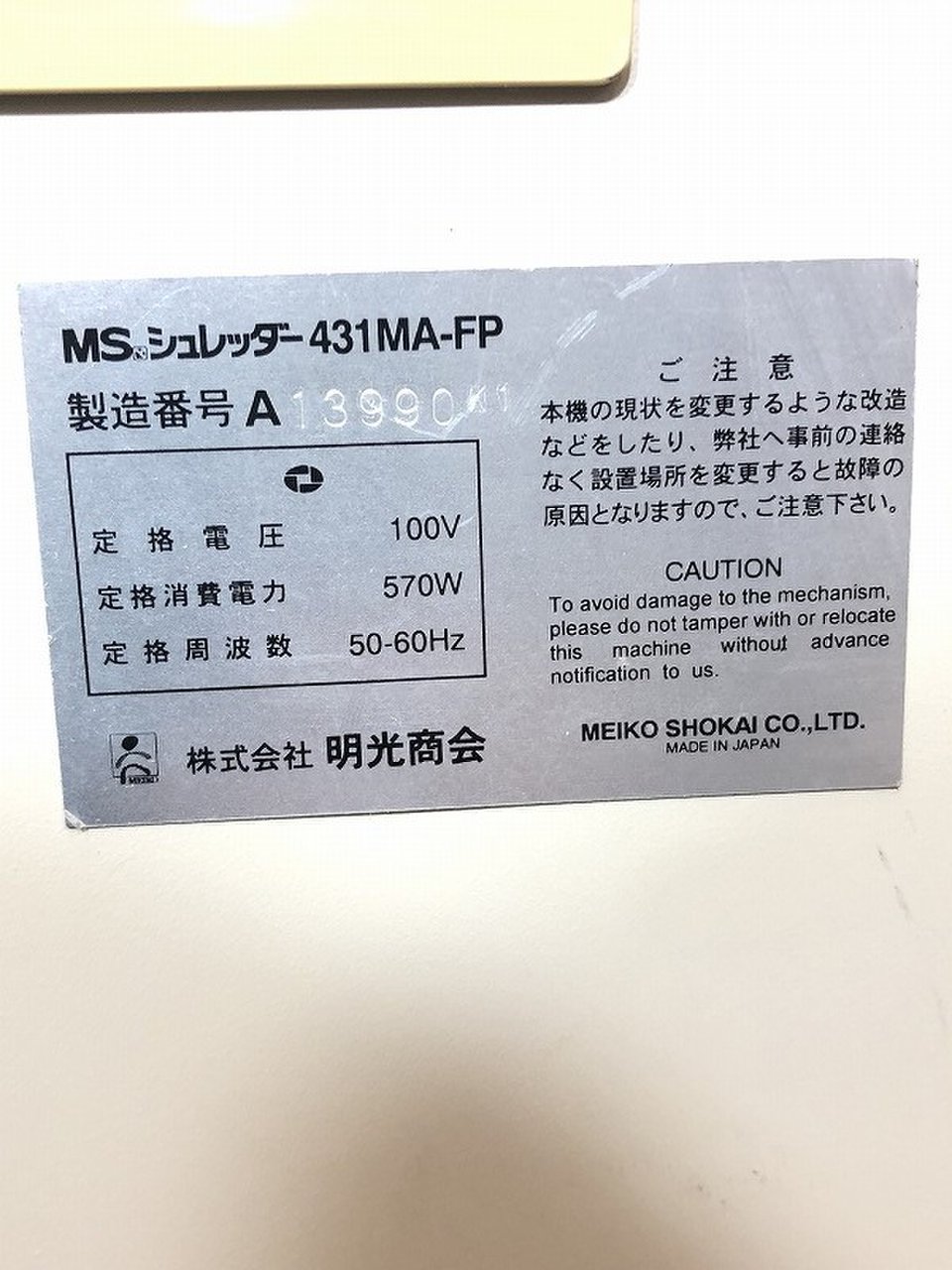 【中古】 MS-431MA 明光商会 シュレッダー 268652