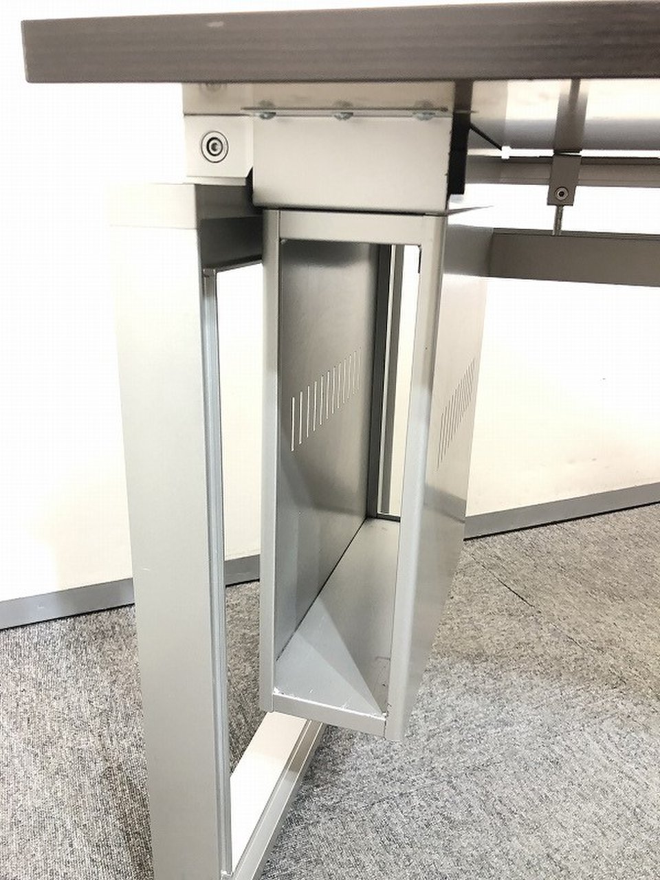 国内メーカー製で天板、脚共にスチール製ですので
