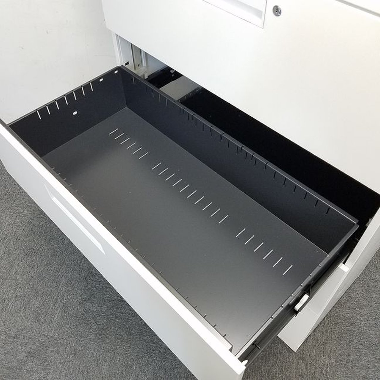 - 両開きタイプは扉が180度開き、通路の邪魔になりません。ラテラルタイプは引出しが限界まで出せ、出し入れ楽々。