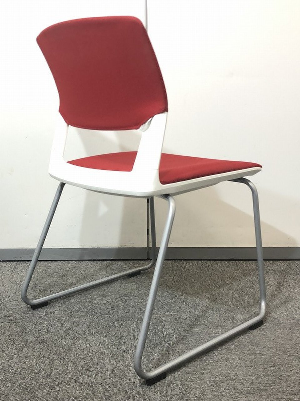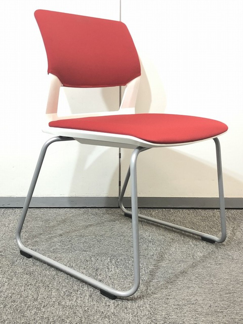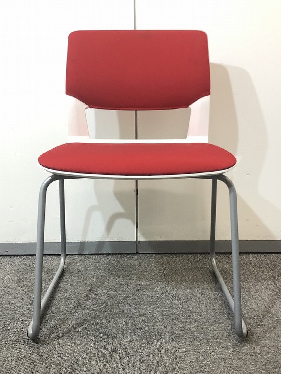 【しっかりクッションで座りやすい!】■コクヨ製 スタッキングチェア 座:レッド 背:ホワイト ■フローリングでも使いやすい!ゴムキャスタータイプ!