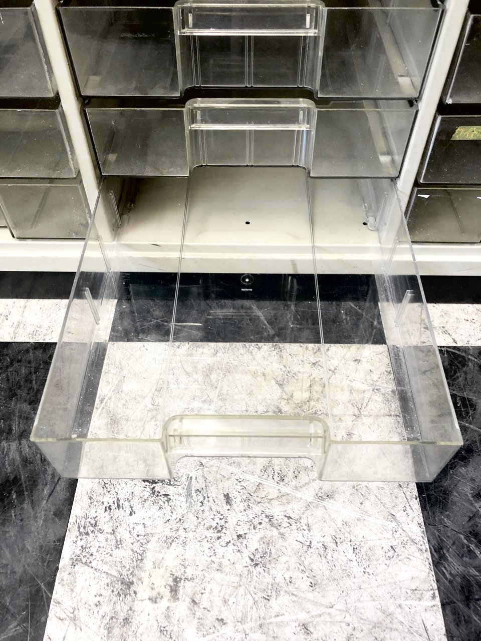 【限定一台!】細かく書類整理可能!テプラ等を張れば、誰でも分かりやすく整理整頓!3列タイプクリスタルトレーキャビネット- 埼玉本店