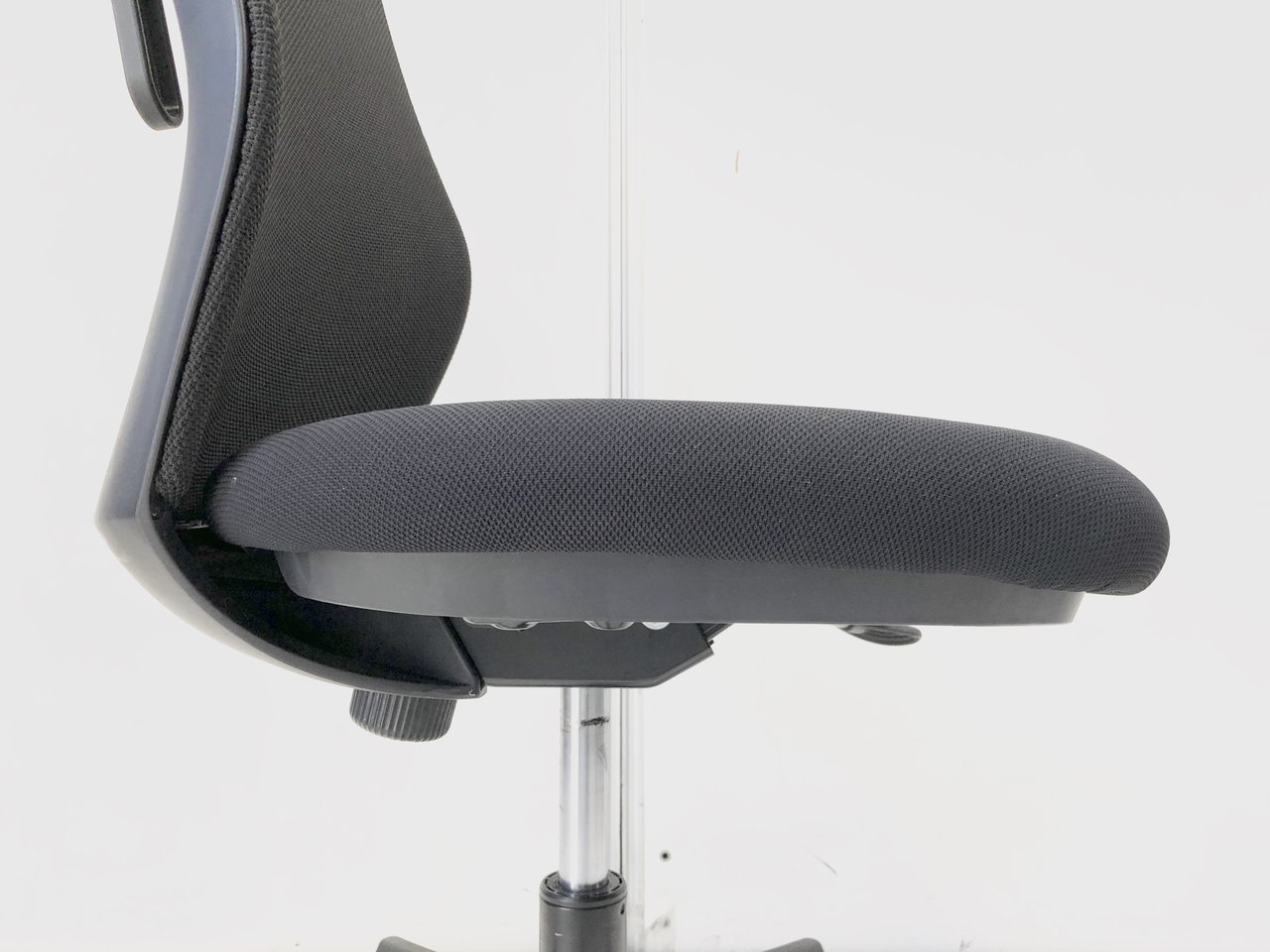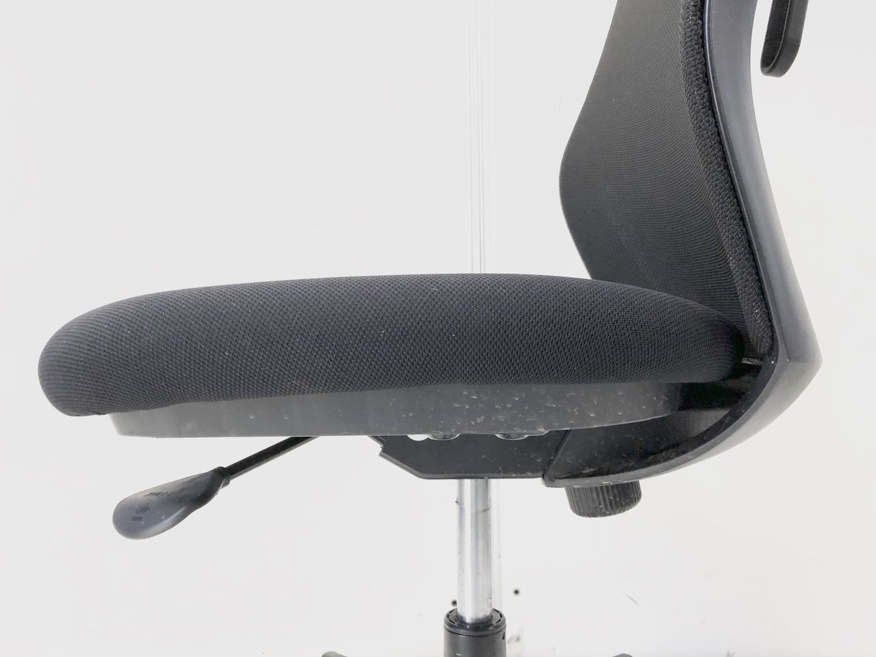 高級チェアとの大きな違いを挙げると、腰を支えるランバーサポートがない、座面の奥行き調節ができない点でしょうか。これらの機能は、パソコンなどを使った長時間のデスクワークをされていて、腰痛などの不安を抱えている方にとっては外すことのできないものですが、そうでない方には必ずしも必要のない機能だと思います。