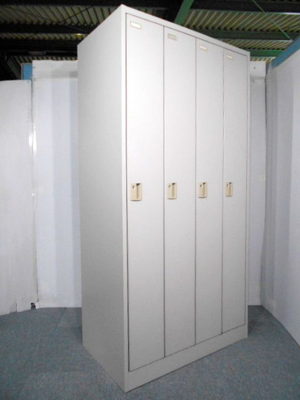 4人用更衣ロッカー オカムラ FZシリーズ 落ち着いたニューグレー色 シリンダー錠 鍵付き