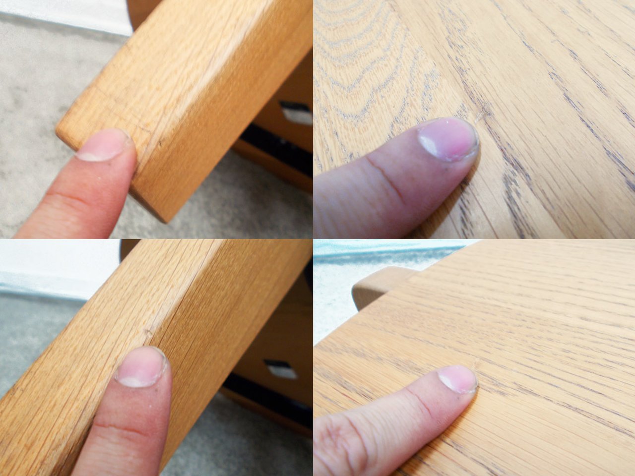- 目立つ箇所あり傷・凹みが多数、深い傷・凹みが一部ある。(例、天板、幕板、棚板、サイド部分、脚部等にある。)