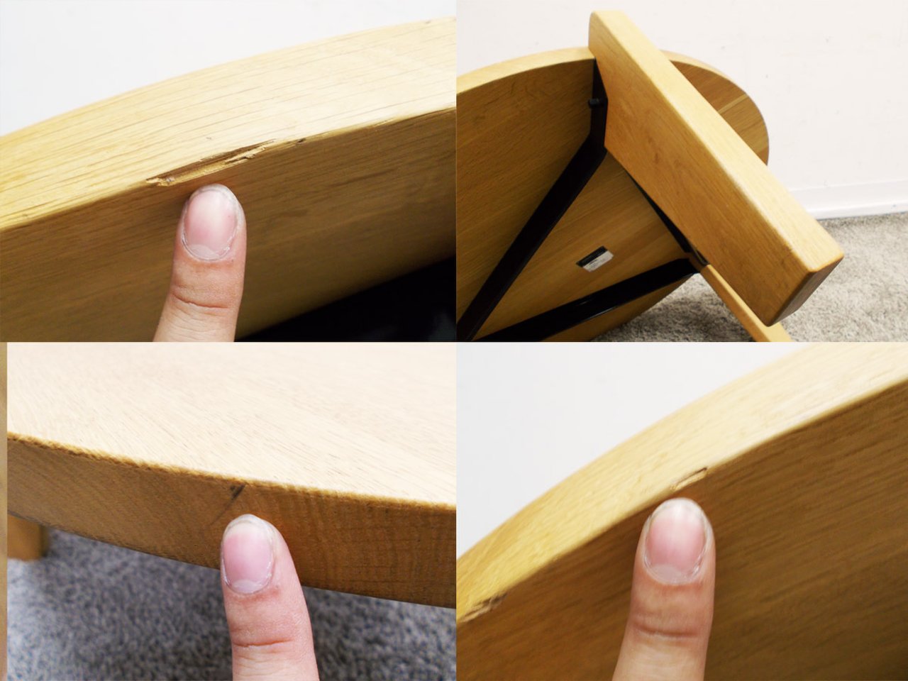 - 壊れている天板歪み、アジャスター無し、キャスター使用不可のようにそのテーブルの本来の効用を果たすための機能に不具合がある。