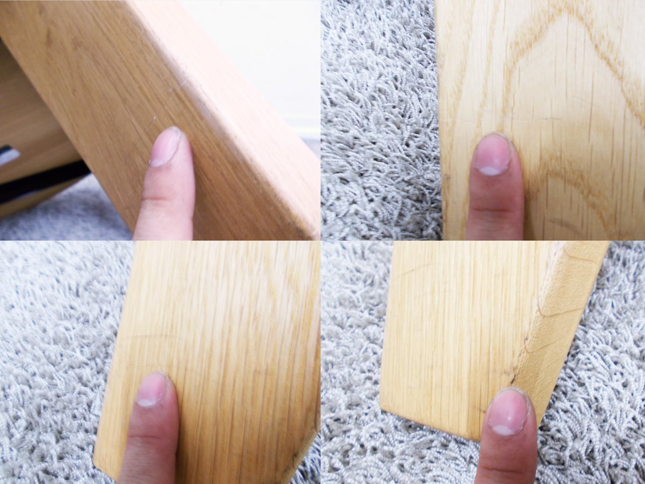 - 目立つ箇所あり傷・凹みが多数、深い傷・凹みが一部ある。(例、天板、幕板、棚板、サイド部分、脚部等にある。)
