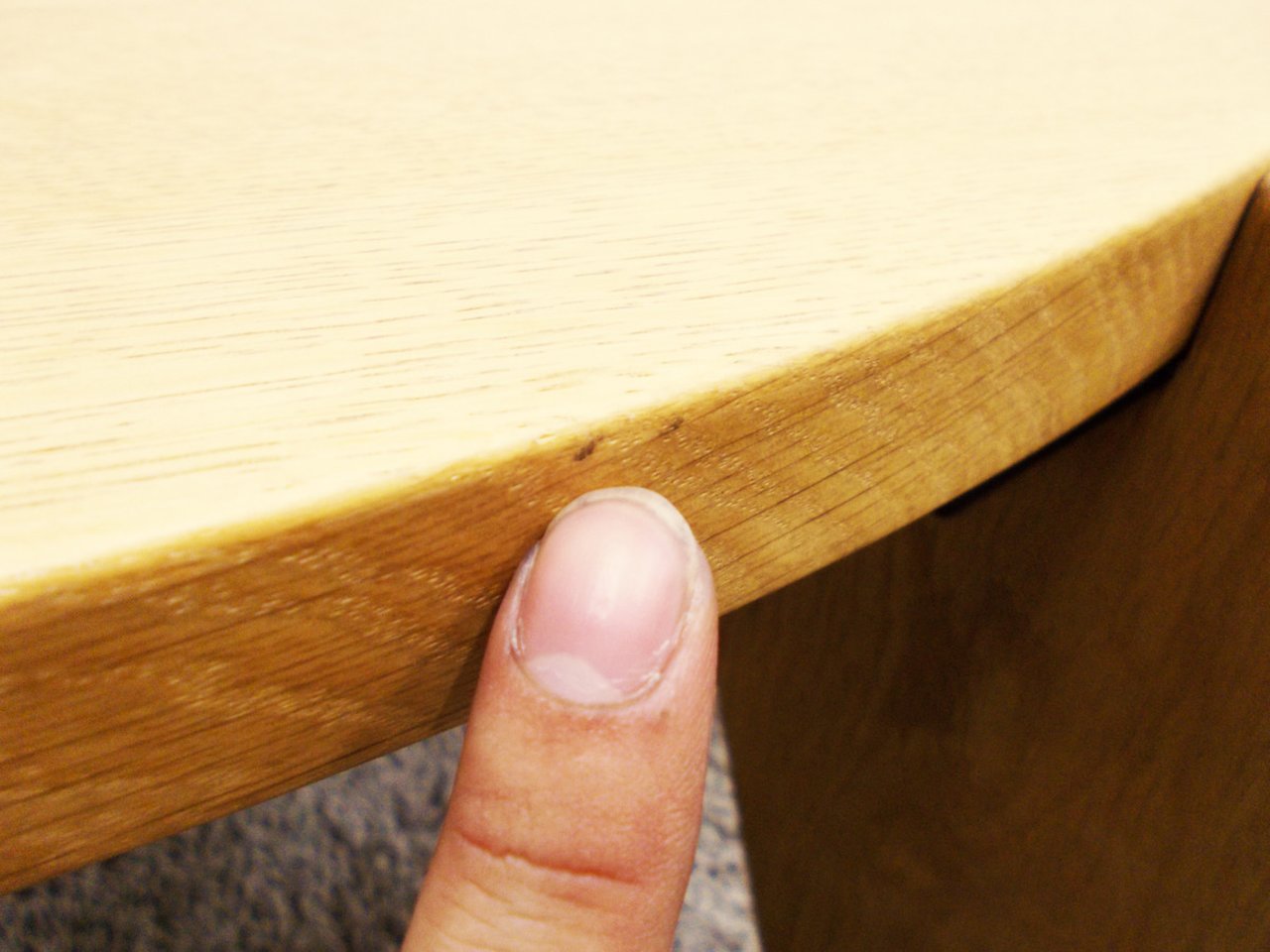 - あり黄ばみ・変色が広い範囲にうっすらある、または濃い黄ばみ・変色が一部ある。(例、天板、幕板、棚板、サイド部分、脚部等にある。)
