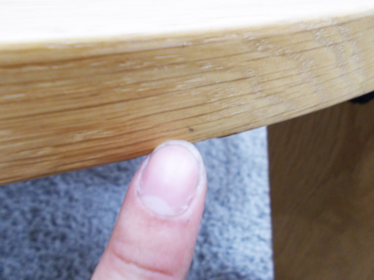 - かなり強い濃い黄ばみ・変色が商品全体にある。(例、天板、幕板、棚板、サイド部分、脚部等にある。)
