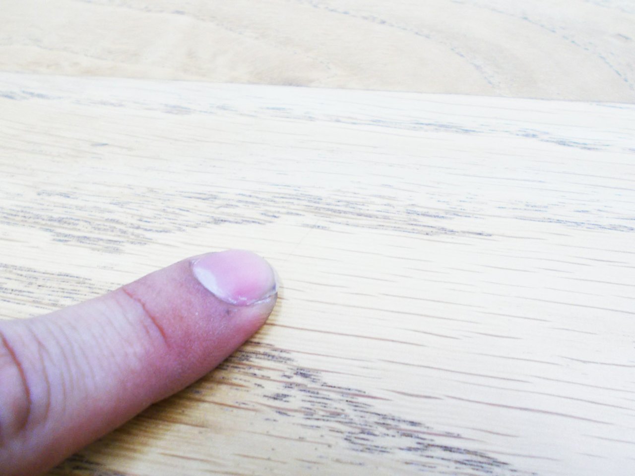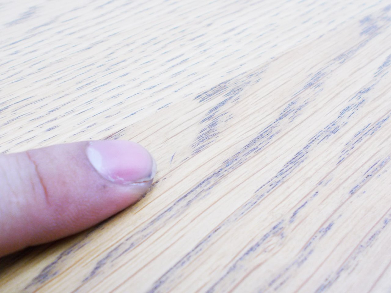 - あり黄ばみ・変色が広い範囲にうっすらある、または濃い黄ばみ・変色が一部ある。(例、天板、幕板、棚板、サイド部分、脚部等にある。)
