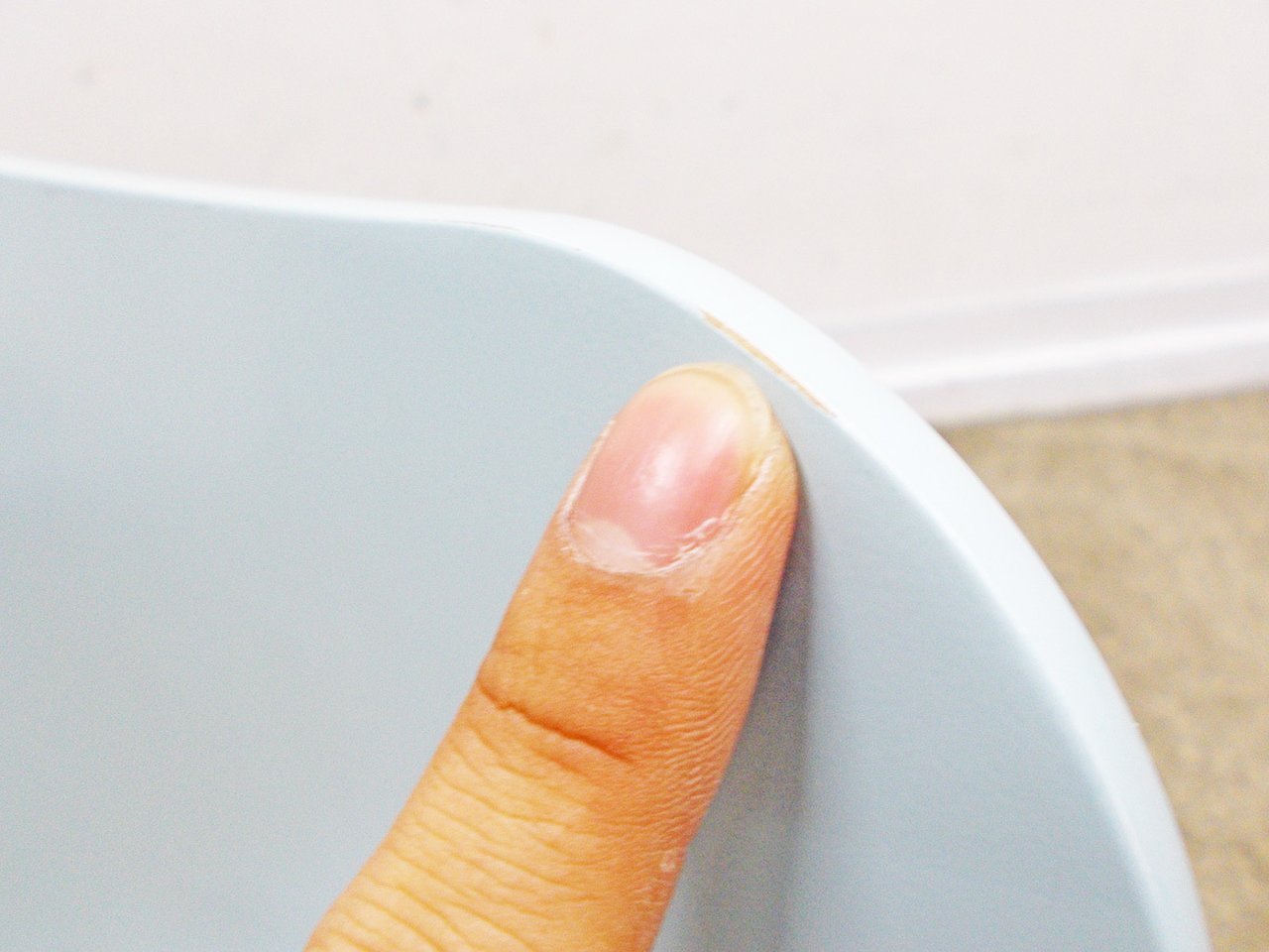 - かなり強い濃い黄ばみ・変色が商品全体にある。(例、座面・背もたれ、脚部等にある。)