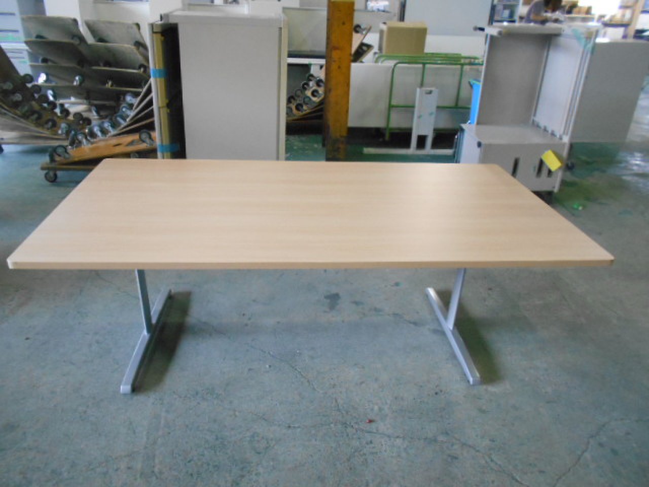 打ち合わせや作業にオススメのミーティングテーブル! ■オカムラ/8177シリーズ/天板カラー:プライズウッドライト 脚カラー:ブラック ミーティングテーブル 会議用 ■W1800×D750㎜