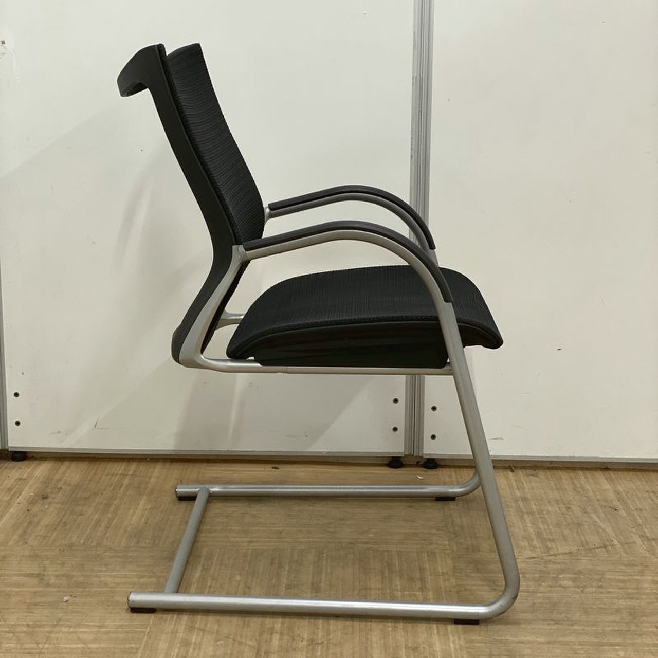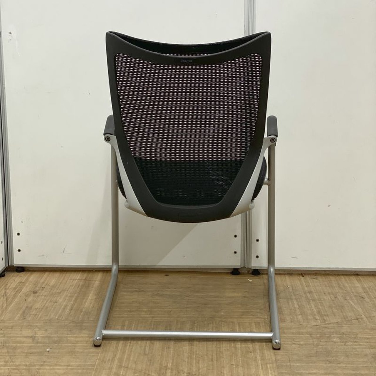 【在庫入替セール】オカムラ バロン ゲストチェア(ミーティングチェア) 背メッシュ×座クッション カンチレバー脚 ブラック×クロームメッキ