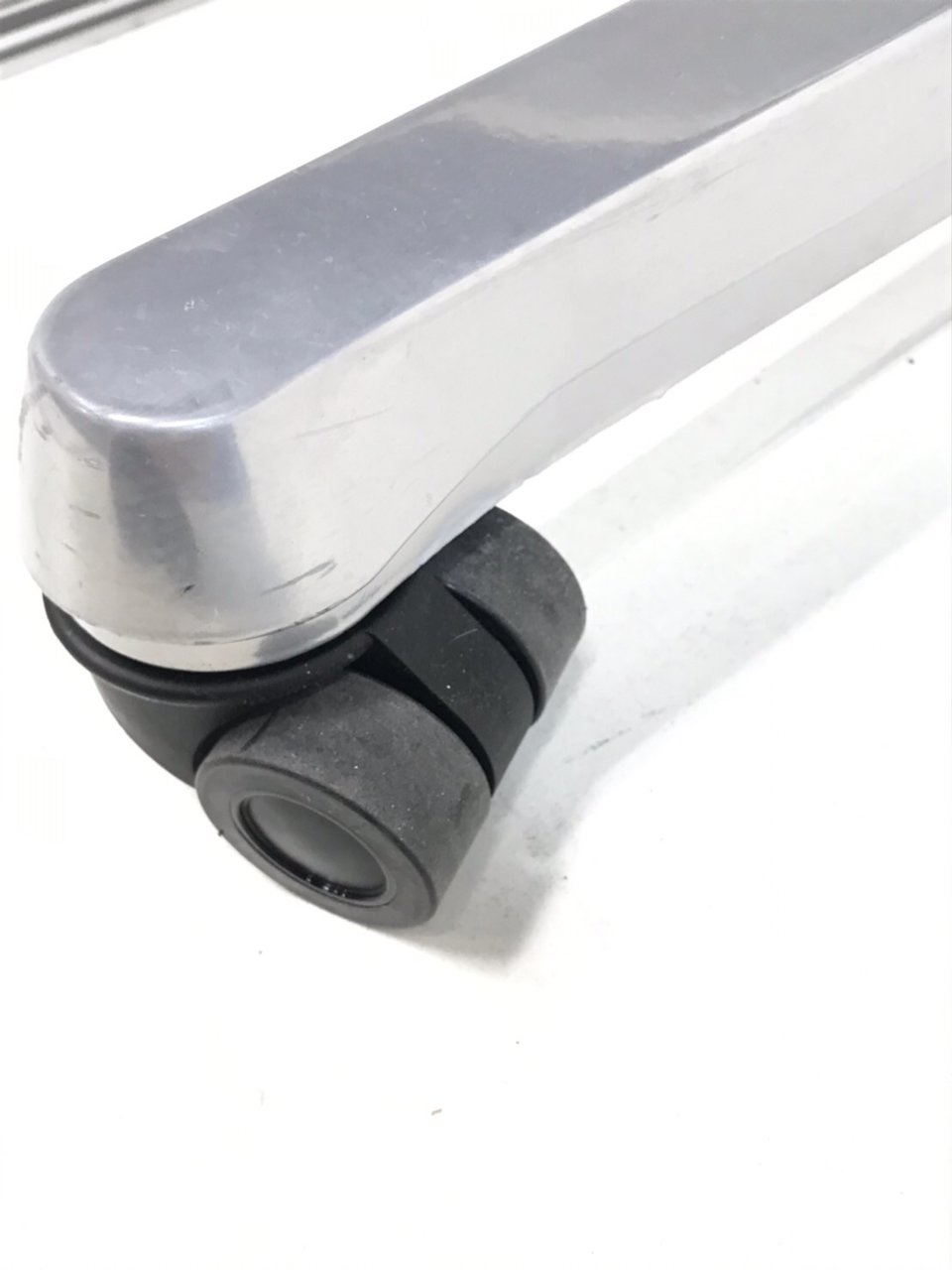 - 多数不具合あり天板歪み、アジャスター無し、キャスター使用不可ようなそのテーブルの本来の効用を果たすための機能以外の多数が使用不可な状態。(例、キャスターロッ ク機能使用不可、棚板無し等がある。)
