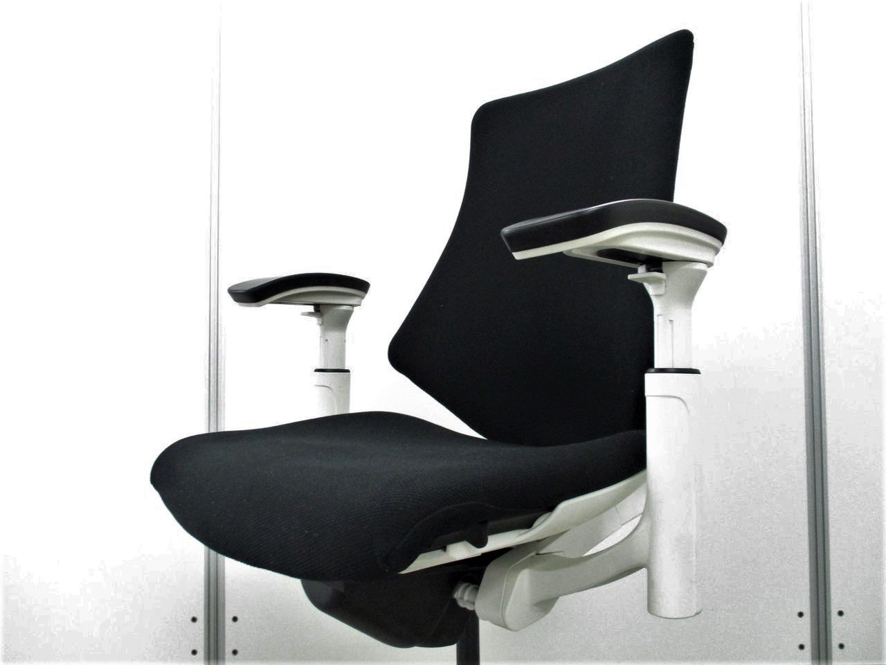 【三次元フォルムが腰にフィット!】希少なエラストマータイプ! ■イトーキ製 エフチェア 肘付 ブラック ハイバック ■姿勢の変化にフレキシブルに対応!