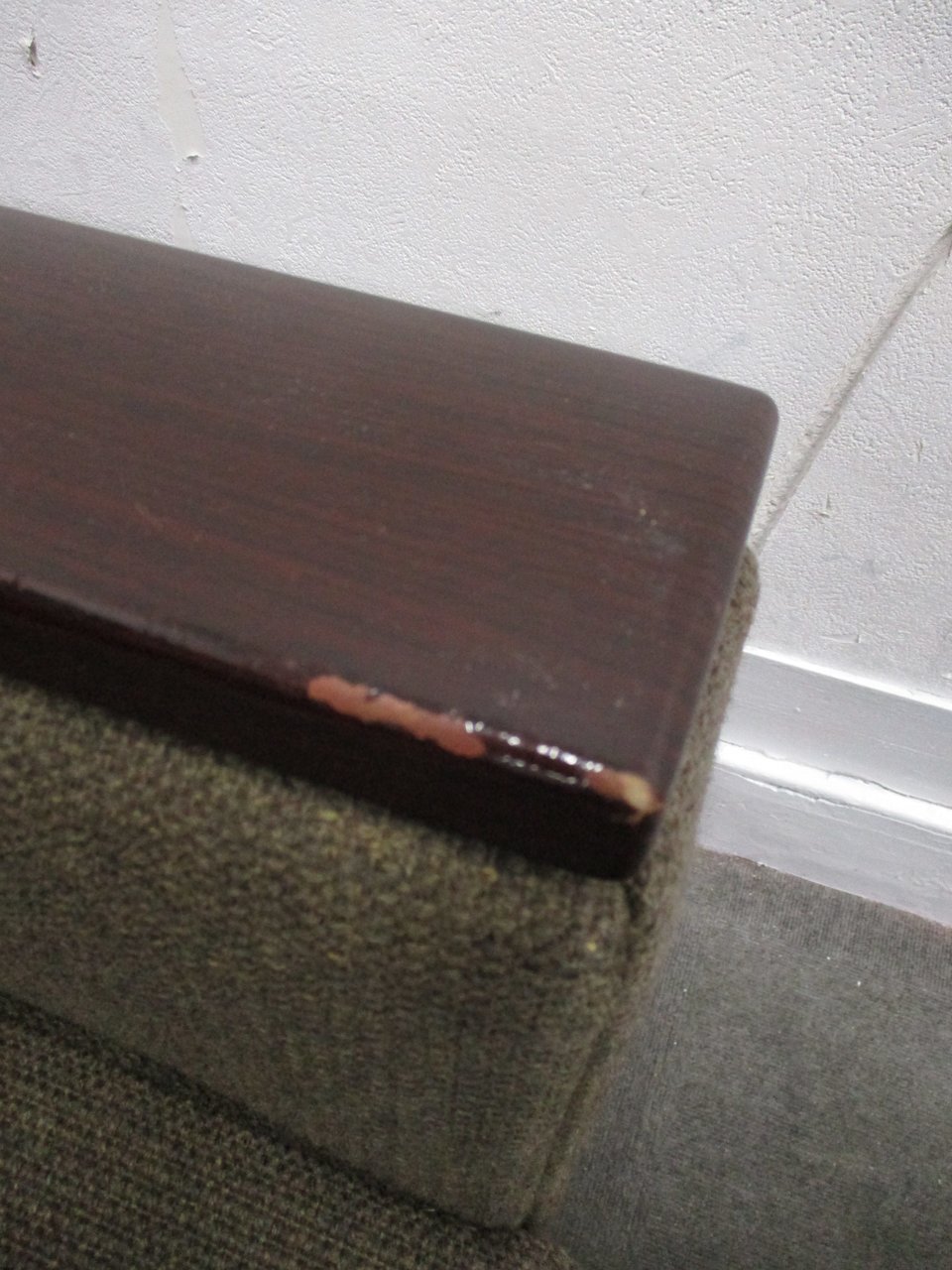 - あり黄ばみ・変色が広い範囲にうっすらある、または濃い黄ばみ・変色が一部ある。(例:三人用ソファ、二人用ソファ、一人用ソファの場合、背もたれ、肘かけ、座面等、 センターテーブルの場合、天板、脚にある。)