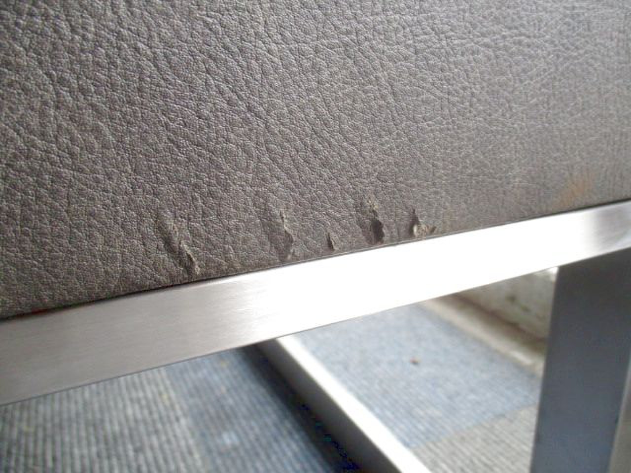 - あり黄ばみ・変色が広い範囲にうっすらある、または濃い黄ばみ・変色が一部ある。(例:三人用ソファ、二人用ソファ、一人用ソファの場合、背もたれ、肘かけ、座面等、 センターテーブルの場合、天板、脚にある。)