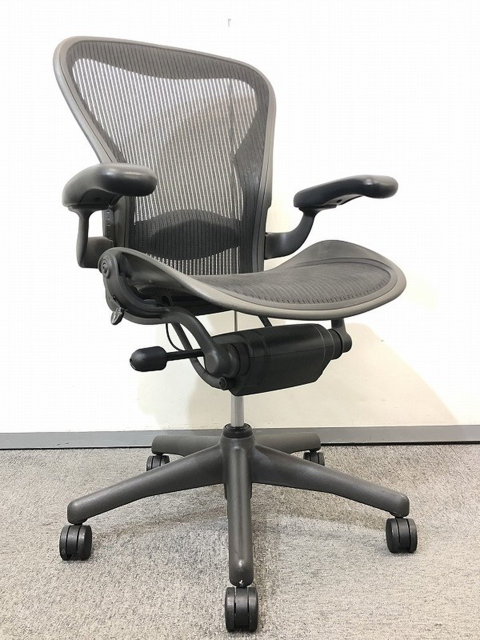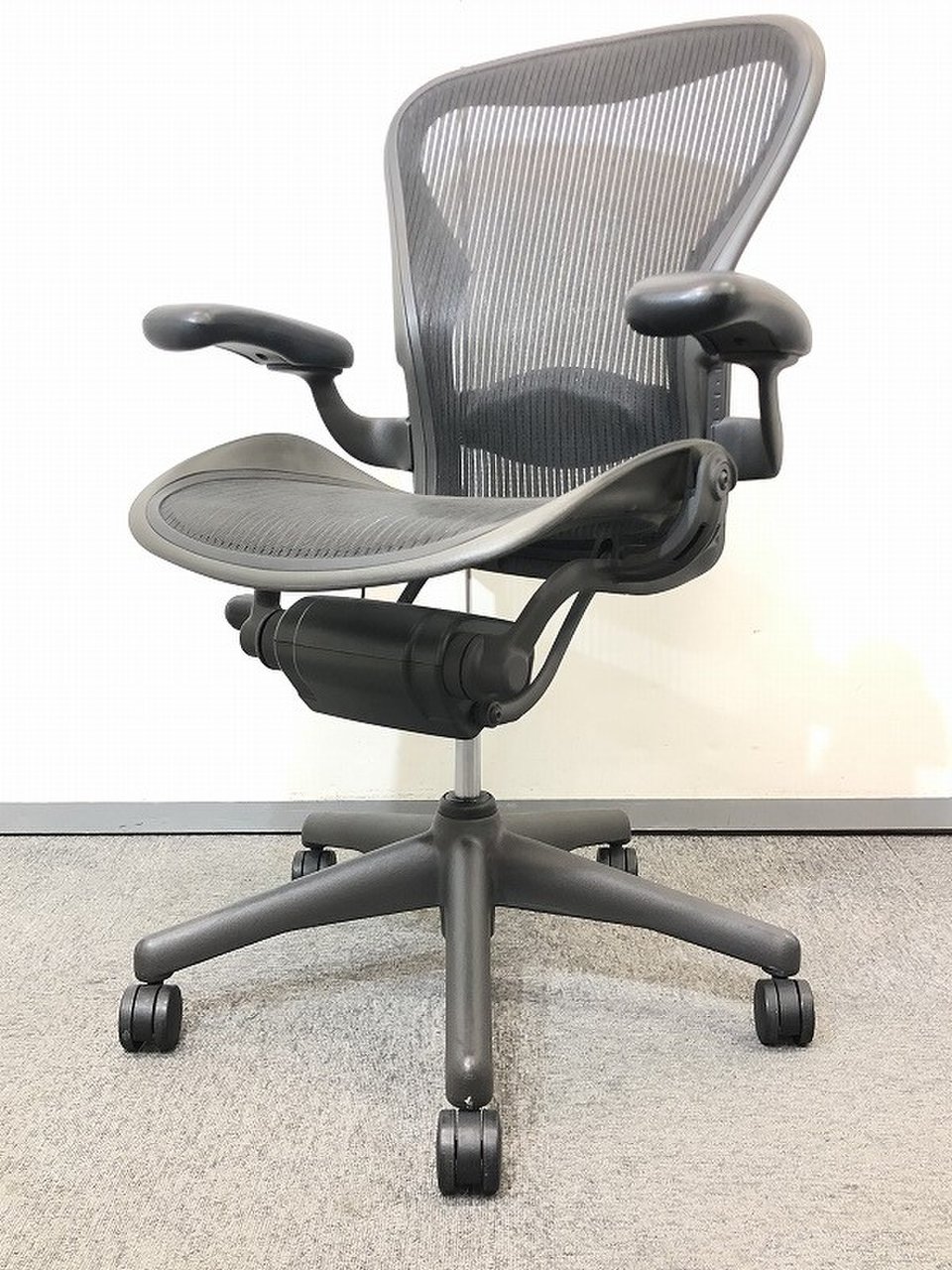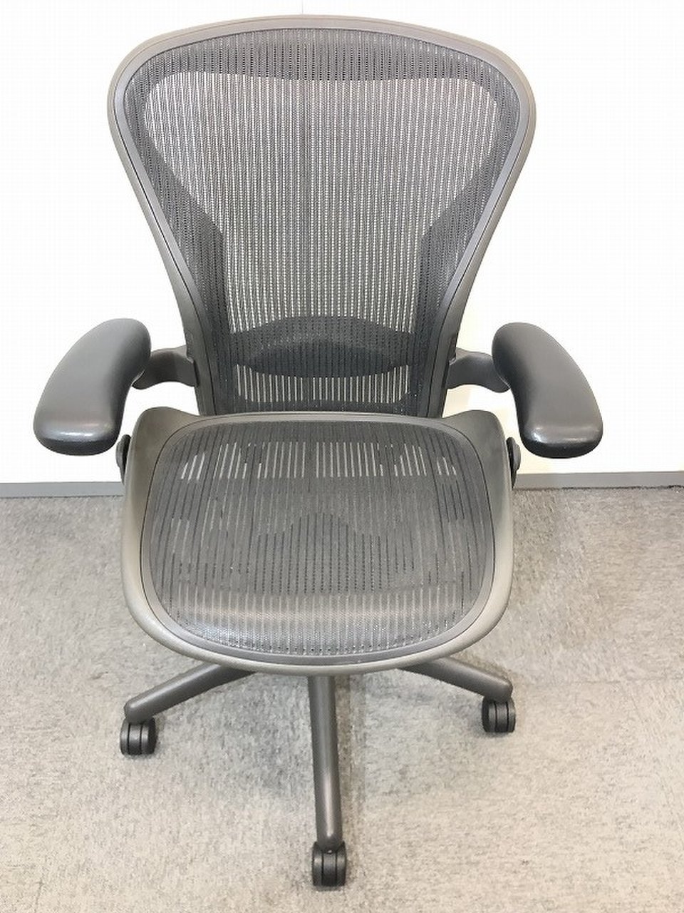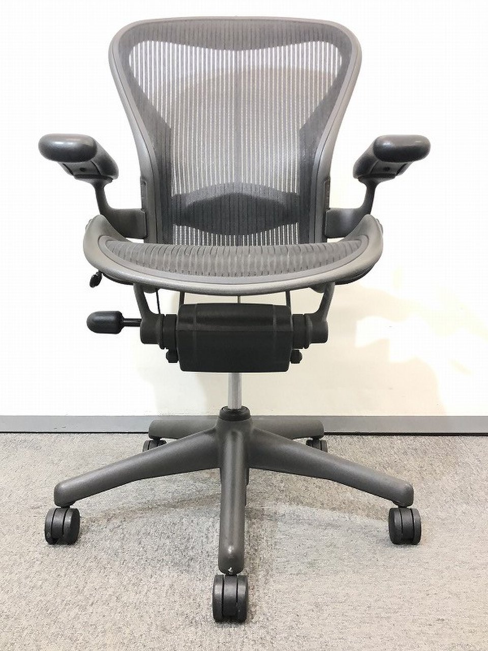【★状態イマイチのためお安く!】■ハーマンミラー製 アーロンチェア Bサイズ 固定肘 ※キズあり・ランバーサポート無・昇降ガス圧弱めのためお安く!【訳あり特価品】