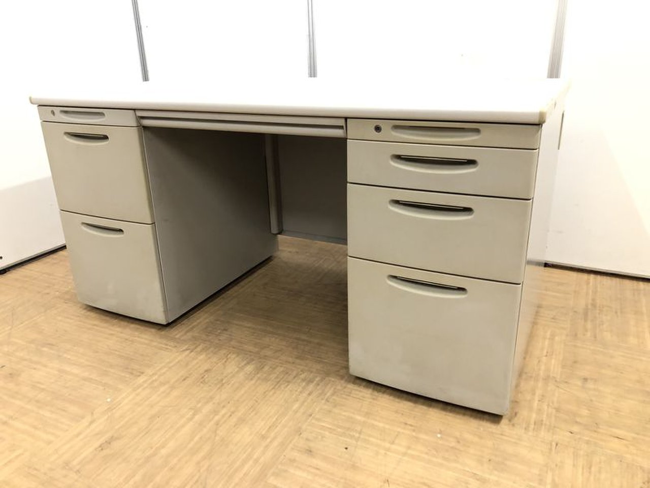 上長席・役員向けサイズ オカムラ SDデスクシステム 両袖机 定番のW1400サイズ 汚れの目立ちにくいニューグレー 鍵付き シリンダー錠