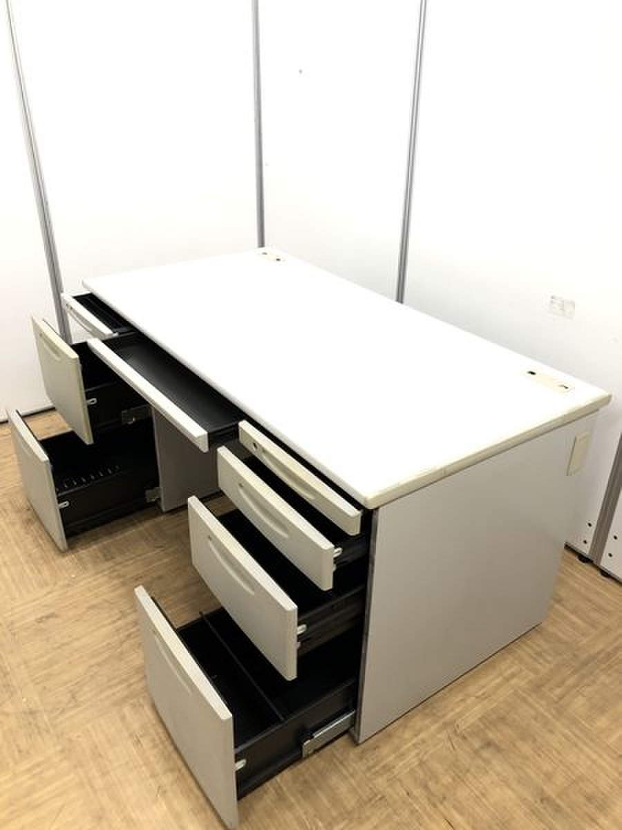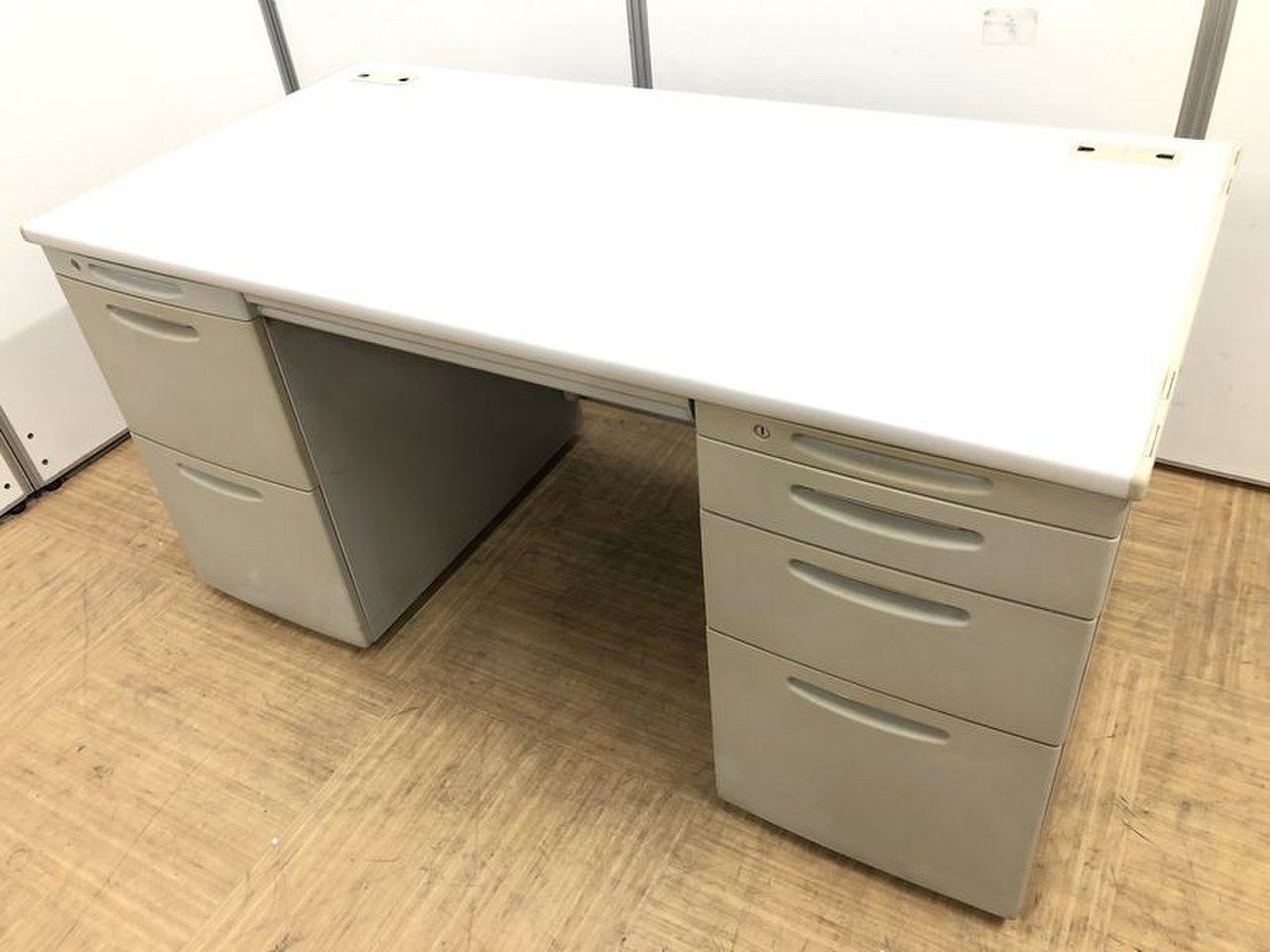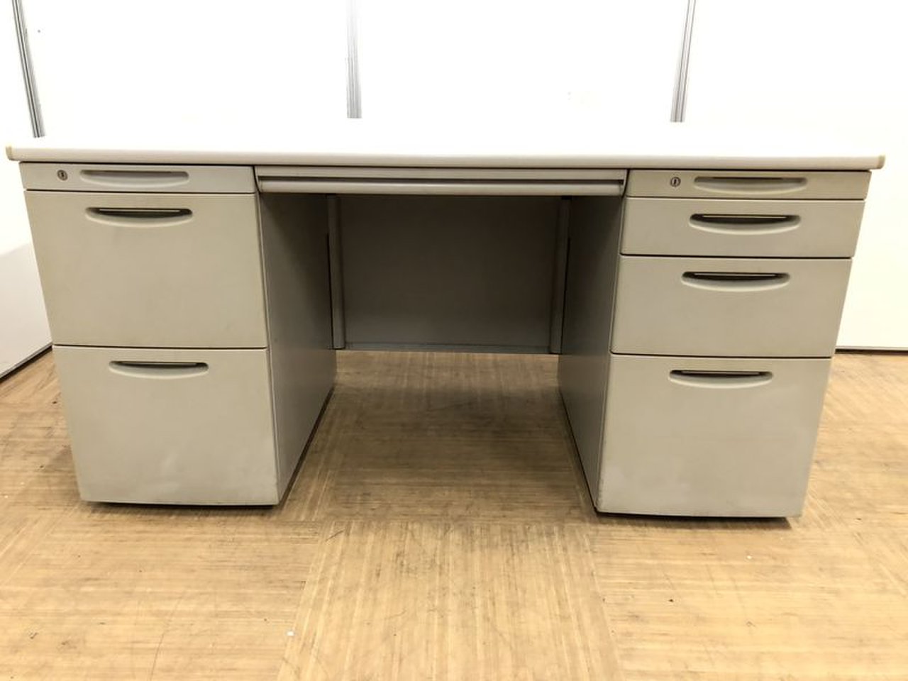 【上長席にオススメ】W1400サイズ両袖机【収納物の仕分けもしやすい深さ違いの引き出しです】- 名古屋本店