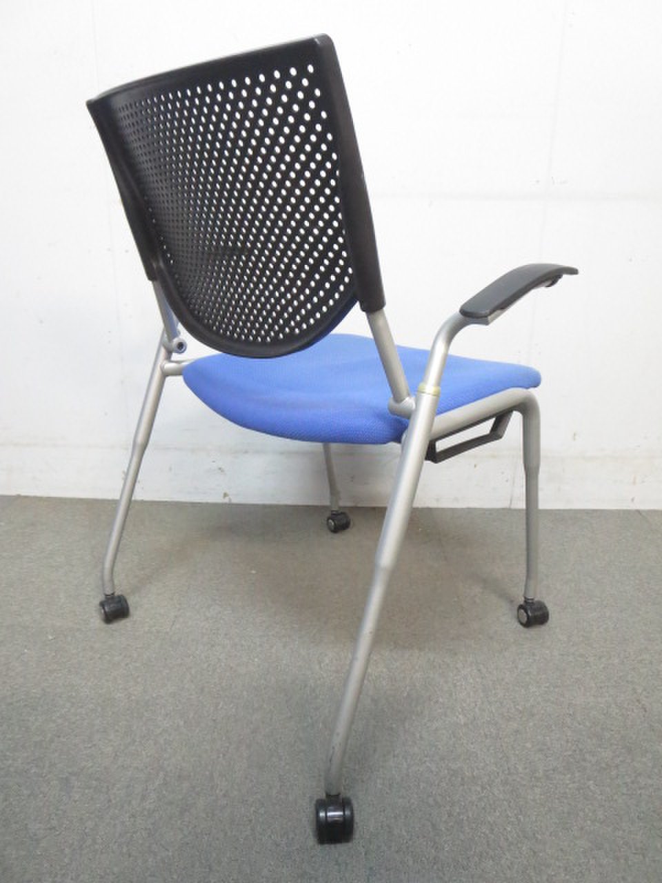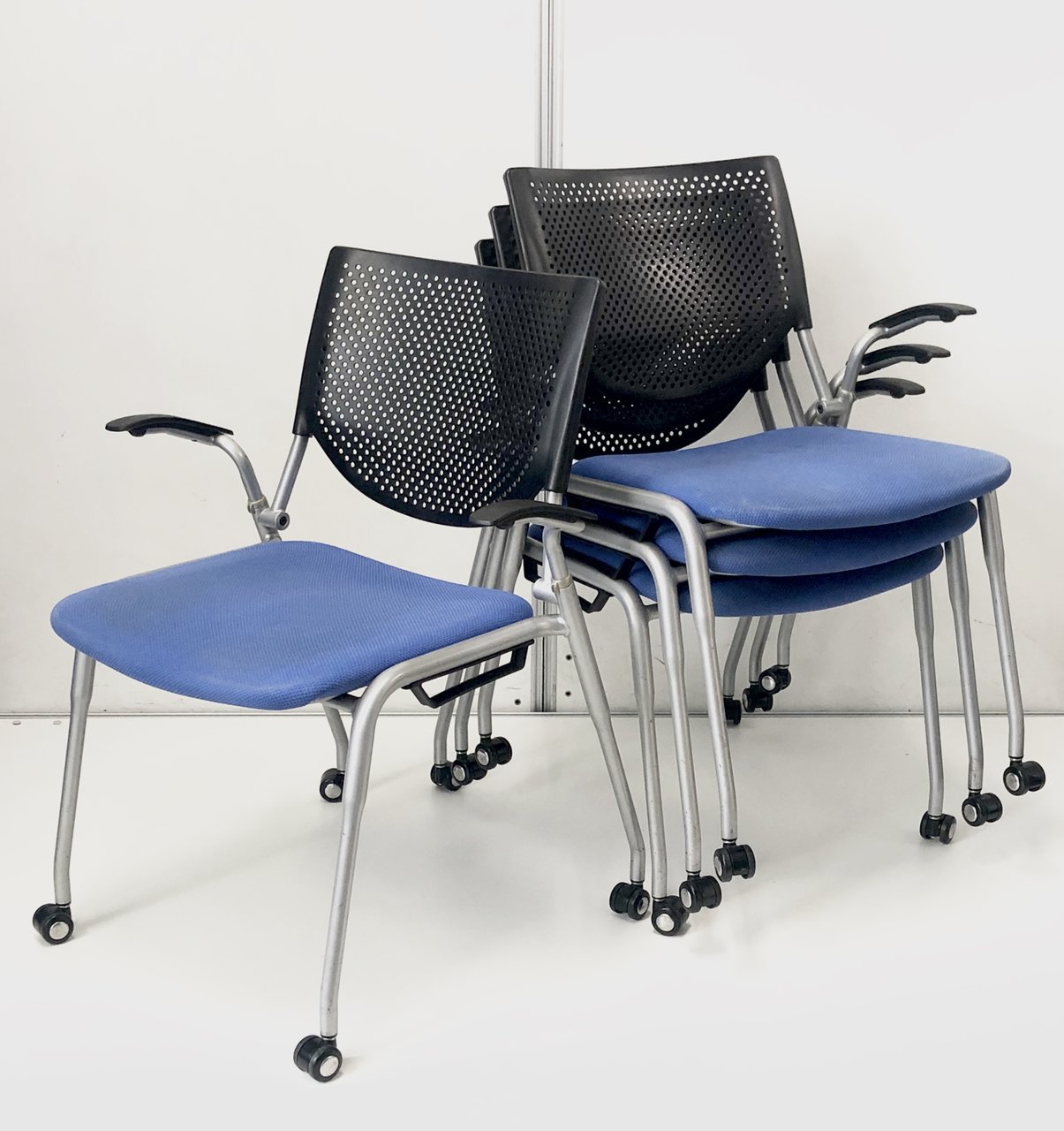 【肘付でリラックス!】■オカムラ製 スタッキングチェア ■プロスタックシリーズ ブルー■【おつとめ品】在庫入替に伴いお買い得!サーキュラーバリューCO2削減量の算出について
