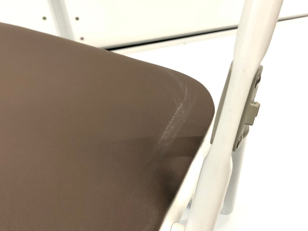 - あり黄ばみ・変色が広い範囲にうっすらある、または濃い黄ばみ・変色が一部ある。(例、座面・背もたれ、脚部等にある。)