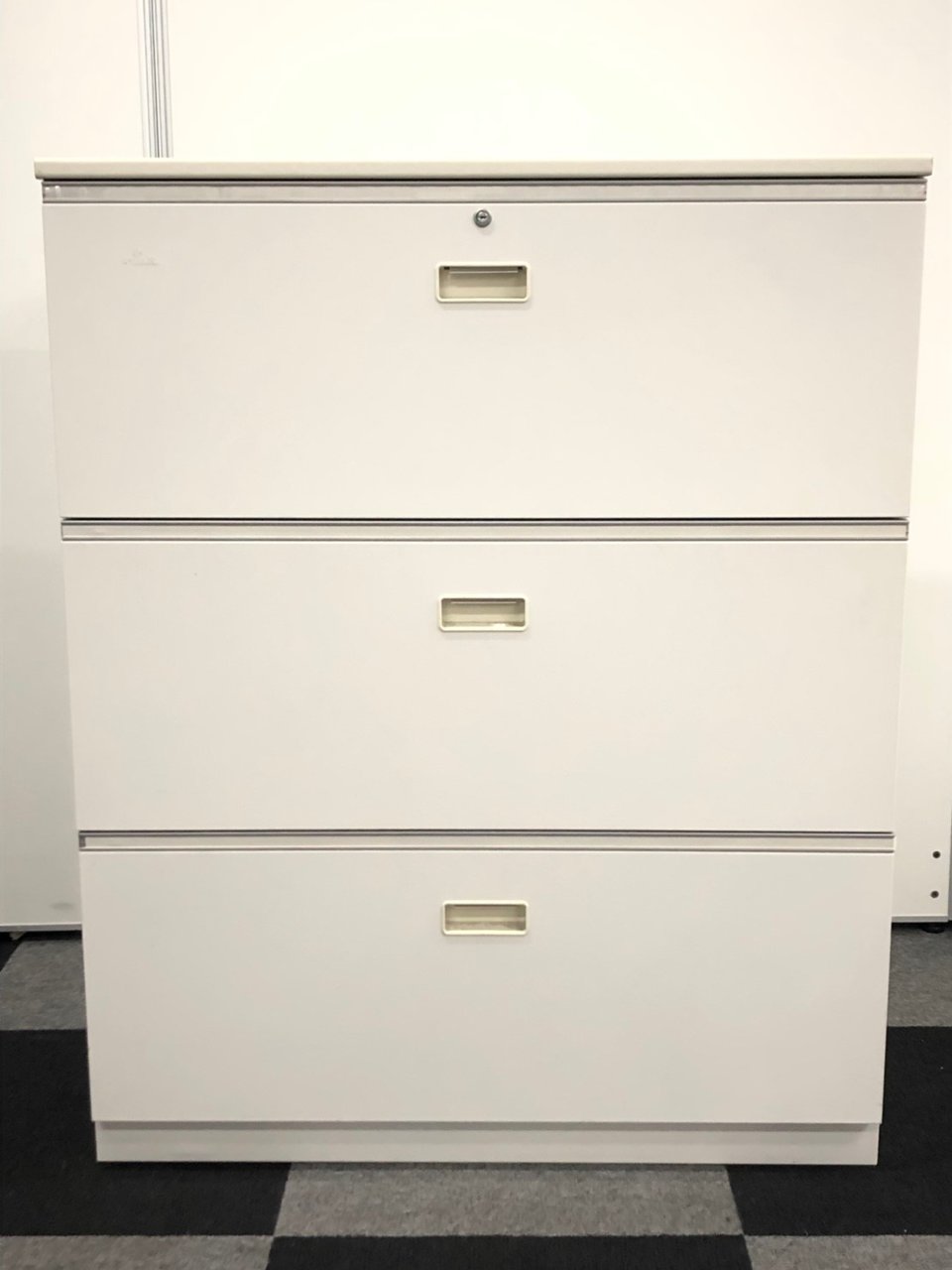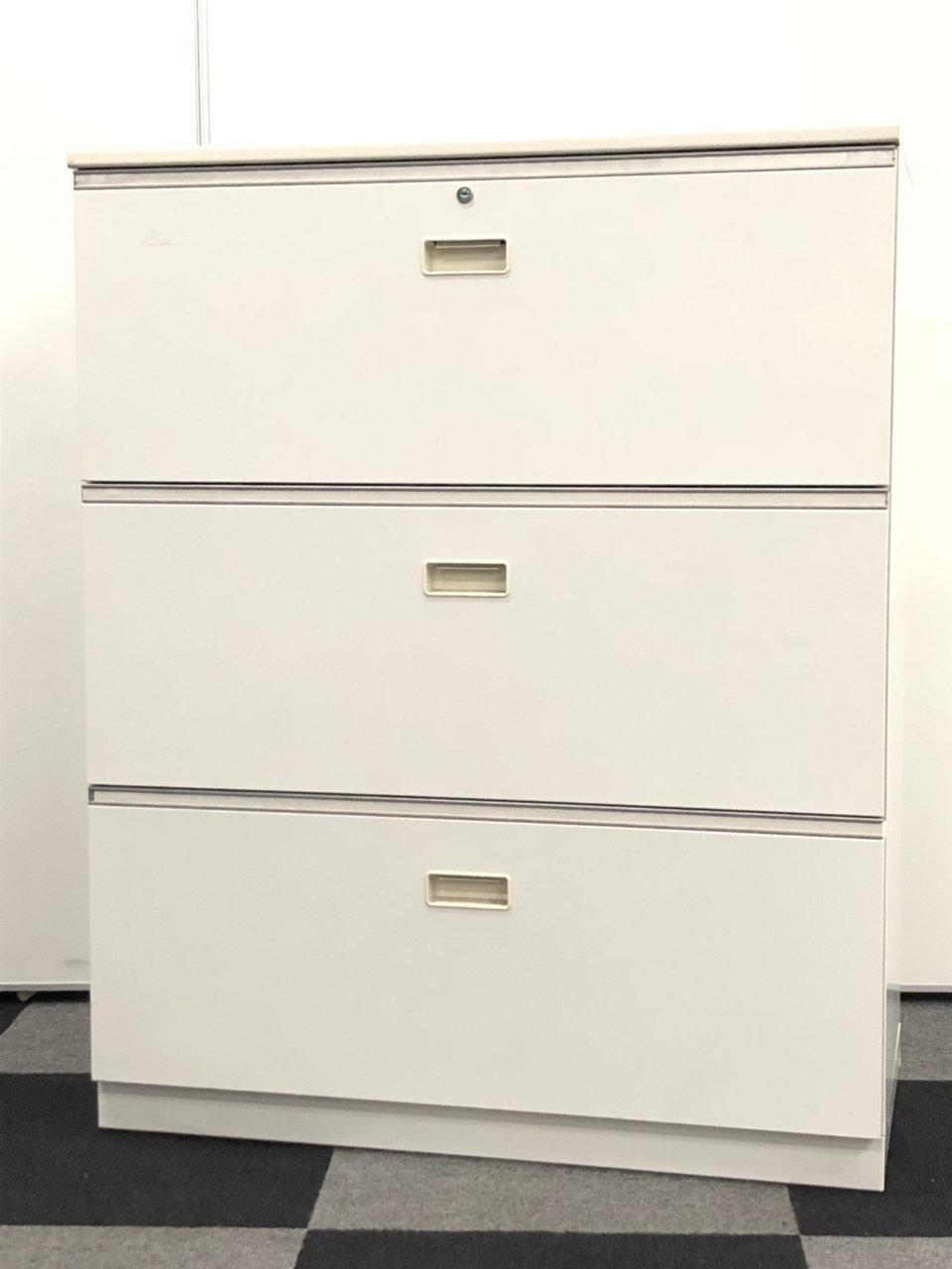 【在庫一掃セール】【倉庫在庫品】 【鍵1本無料作成】【A4ファイル3段収納!天板付き!】 今売れてるホワイトキャビネット!- 在庫数